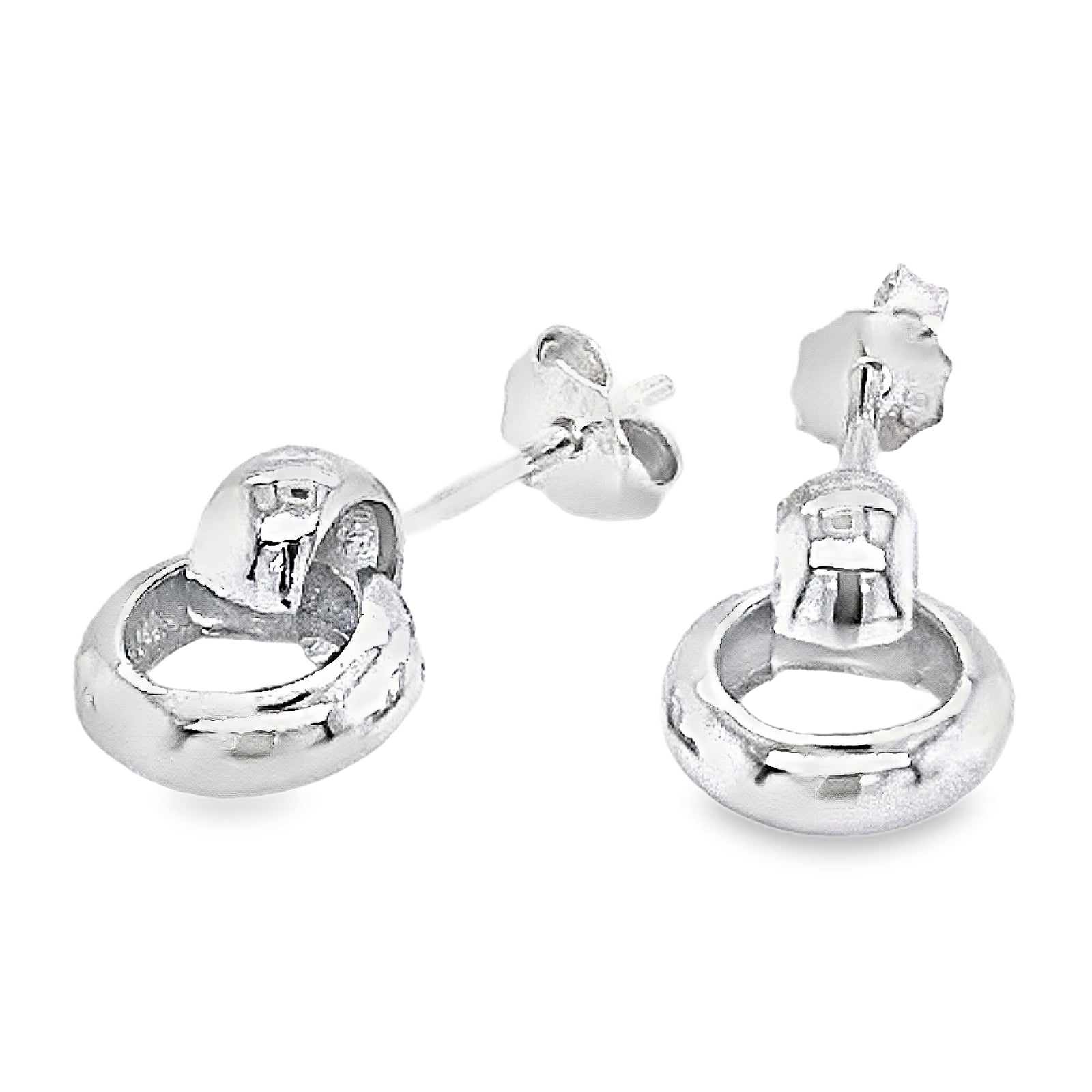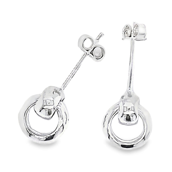 Silver Double Linked Circle Drop Earrings