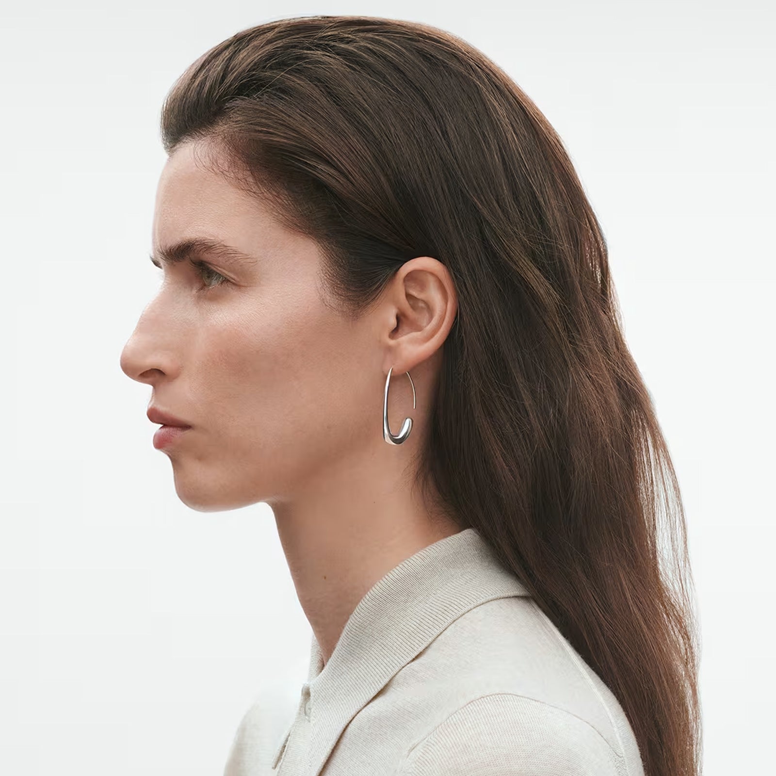 Combining expert craftsmanship with striking design, these sterling silver hoop earrings capture the essence of Scandinavian style. The minimal organic shapes are understated and elegant and reflect the individuality of the wearer in a sophisticated way. Jacqueline Rabuns emotionally powerful Offspring collection for Georg Jensen symbolises the strong connection between parent and child. Beautifully crafted in sterling silver, these hoop earrings are suitable for pierced ears. Product details Item number: 10016947 Materials: Sterling Silver Measurements: H: 38 mm / 1.5 inches. W: 21 mm / 0.83 inches. Design year: 2019