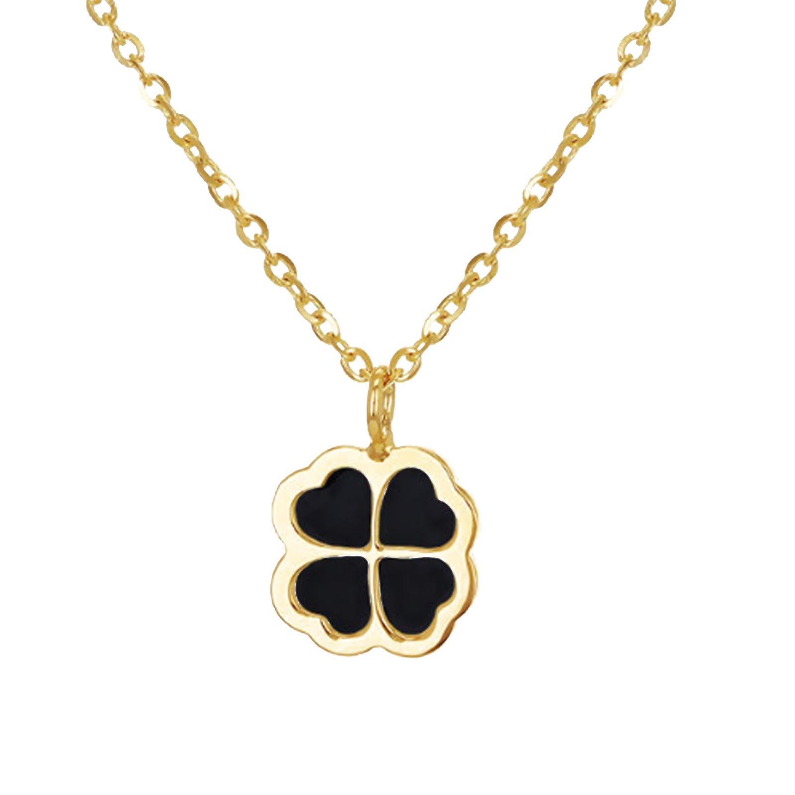 9ct Yellow Gold Onyx Clover Necklace