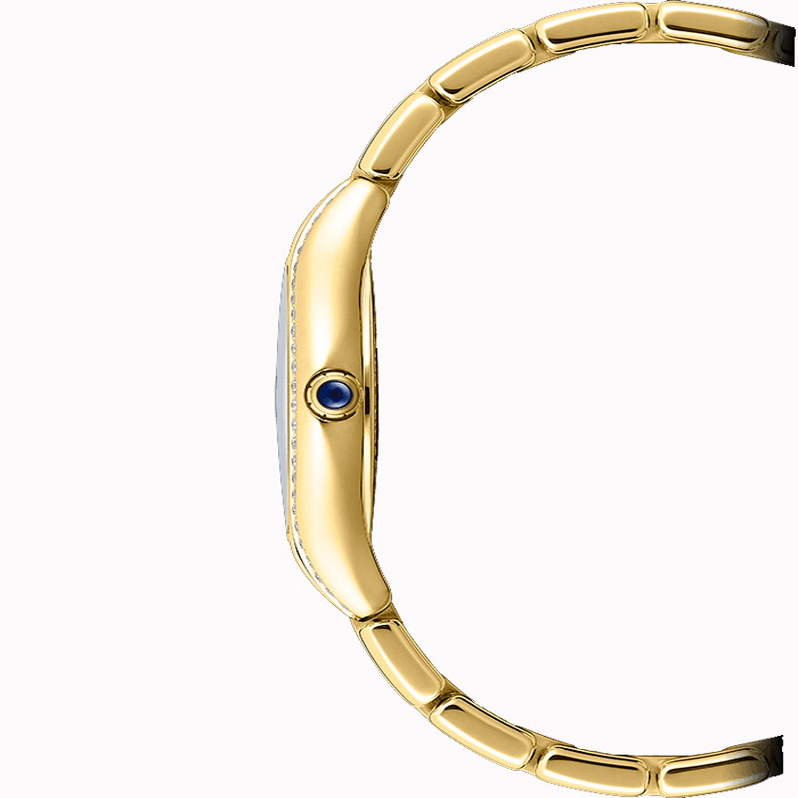 Raymond Weil is a luxury watchmaker based in Switzerland. The brand is known for drawing inspiration from music and contemporary culture. Raymond Weil's watches combine watchmaking traditions and modern innovation. The brand not only focuses on the aesthetics of their designs but the materials they use. Raymond Weil maintains a high-quality standard through its experience in watchmaking and its dedication to skilful craftsmanship. Named after the granddaughter of Mr Raymond Weil, the line stands-out with its delicate style. Noemi watches are feminine and expertly created to suit the needs of the modern-day woman. Core Features of the Noemia Collection: This collection has been crafted with premium materials and each bracelet is hand finished. Each model within the Noemia collection is equipped with scratch-resistant sapphire glass for long-lasting durability. The watch is quartz powered. Noemia watches are water-resistant up to 5 bars or 50 meters. The watch has a mother-of-pearl dial. The case is made from yellow-gold PVD stainless steel and the case width measures 24 mm. The bracelet of the watch is also made from yellow-gold PVD stainless steel The diamond indices and the gold sword-shaped hands highlight the luxurious look of the watch. The crown showcases the Raymond Weil logo.