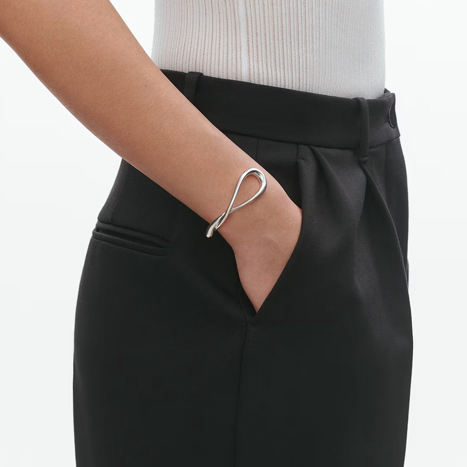 The recognisable swirl design of Jacqueline Rabun's Mercy collection defines this elegant bangle. Crafted in solid sterling silver, its open design makes the piece a sculptural piece of jewellery with a distinctive expression. Product details Item number: 20001405 Materials: Sterling Silver Measurements: W: 20 mm / 0.79 inches. Circumference: S: 155 mm / 6.1 inches, M: 165 mm / 6.5 inches, L: 175 mm / 6.89 inches Design year: 2023 Launch year: 2023