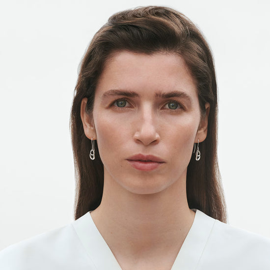 Two organic forms inspired by the shape of an egg are forever linked together, the smaller one nestling inside the larger one, to form these stunning sterling silver earrings. Symbolising the strong relationships between two people - parent and child, lovers or siblings - they have a powerful emotional impact that adds another level of thought when gifting them as an expression of love. Inspired by the unique bond between parent and child, Jacqueline Rabun’s symbolic and creative Offspring collection has proved a firm favourite with women of all ages. Giving her work an emotional depth, she has designed pieces that work as jewellery but also as strong statements of love. These sterling silver earrings are suitable for pierced ears. Product details Item number: 10012312 Materials: Sterling Silver Measurements: H: 29.8 mm / 1.17 inches. W: 10.3 mm / 0.41 inches. Launch year: 2001