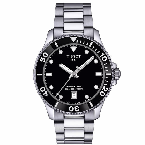 Tissot Gents Seastar 40mm Black Dial Stainless Steel Quartz Watch T1204101105100