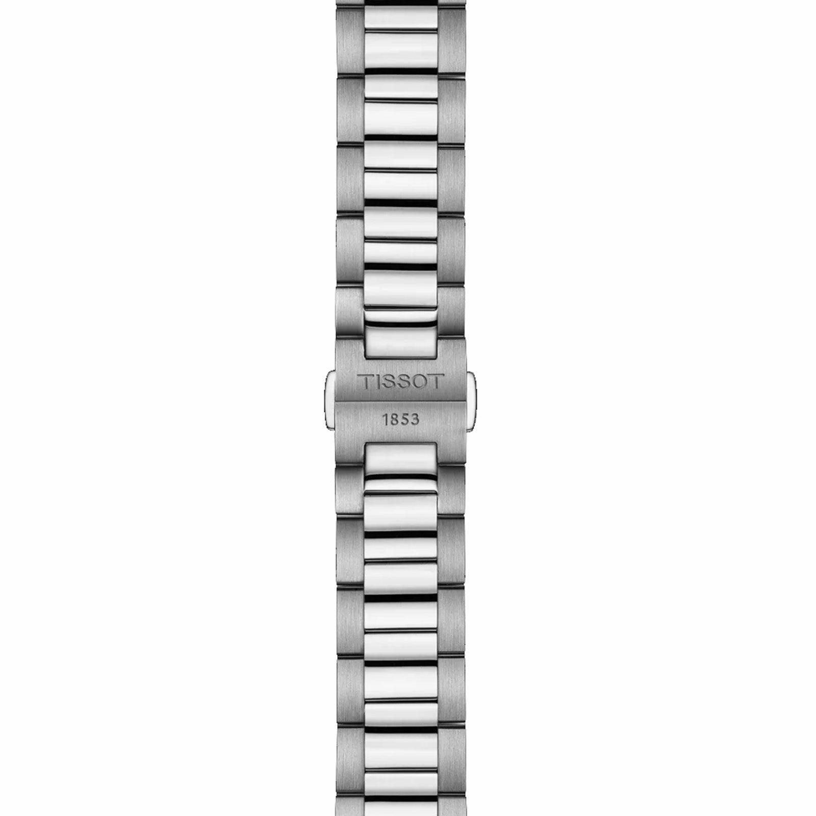 The best-selling Tissot PR 100 remains true to its name: precise (P), robust (R), and water-resistant to a pressure of 10 bar (100 m). Made from stainless steel, this new design offers a large dial thanks to the narrow bezel, for an elegant and minimalist look. The SuperLuminova -coated hands enable precise reading even in the dark. This Tissot PR 100 Quartz model features a 40mm stainless steel case, a deep green dial and a classic stainless steel bracelet for a touch of elegance that will make the difference. About the watch SKU T1504101109100 Collection Classic Contemporary Weight (g) 122.00 Warranty 2 Years of Warranty Country of manufacture Switzerland Case & crystal Length (mm) 40.00 Width (mm) 40.00 Thickness (mm) 8.25 Lug width (mm) 20.00 Water resistance Water-resistant up to a pressure of 10 bar (100 m / 330 ft) Case shape Round Case material 316L stainless steel case Crystal Scratch-resistant sapphire crystal Movement Energy Quartz EOL Movement Swiss quartz mBattery mbattery type Renata 371 Functions EOL (battery end-of-life indicator) Dial HMSD (Hour, Minute, Second, Date) Caliber 11 1/2''' Diameter (mm) 25,6 Dial Dial colour Green Indexes Indexes Luminescent material on the hands Super-LumiNova Strap Strap/Chain reference T605049118 Strap colour Grey Buckle Butterfly clasp with push-buttons, Interchangeable quick release bracelet Buckle options Interchangeable quick release bracelet Links reference T613049257