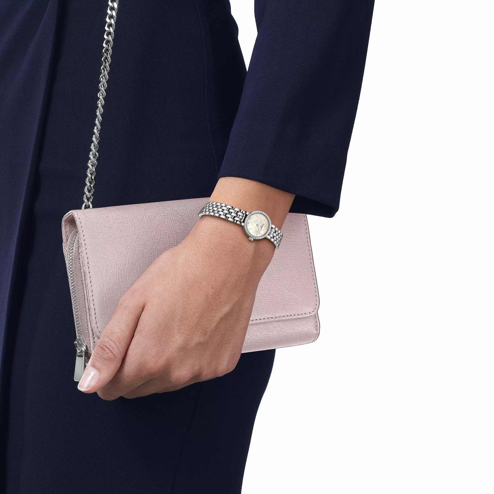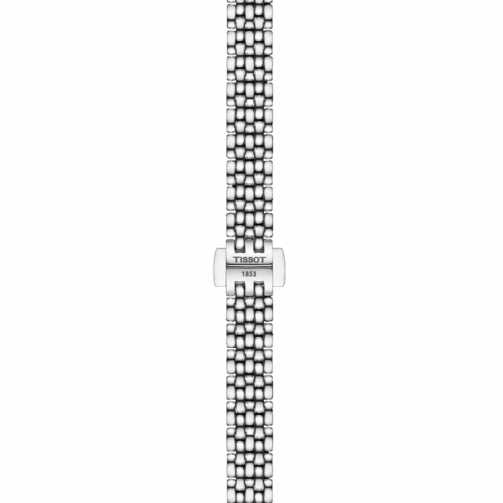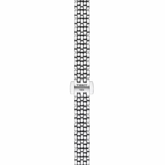 The Tissot Lovely is a watch of refined elegance and timeless design. All Tissot Lovely watches feature a scratch-resistant sapphire crystal and are powered by a precise Swiss Made quartz movement, so you can keep up with time, day and night. This model features a 316L stainless steel case. A diamond forms the hour markers at 12, 3, 6 and 9 o'clock. The watch also features a bezel set with an additional 42 diamonds for sparkling brilliance. The solid yet flexible 316L stainless steel bracelet holds the Tissot Lovely elegantly and securely on the wrist. About the watch SKU T1400096111600 Collection Classic Traditional Weight (g) 38.00 Warranty 2 Years of Warranty Country of manufacture Switzerland Case & crystal Length (mm) 19.50 Width (mm) 19.50 Thickness (mm) 5.00 Lug width (mm) 6.00 Water resistance Water-resistant up to a pressure of 3 bar (30 m / 100 ft) Case shape Round Case material 316L stainless steel case with diamonds Crystal Scratch-resistant sapphire crystal Diamonds on the case 42.00 Carat 0.13 Clarity vs-si Colour Top Wesselton Cut 8/8 Single cut Movement Energy Quartz Movement Swiss quartz Battery Battery type Renata 321 Dial HM (Hour, Minute) Caliber 5 1/2''' x 6 3/4''' Diameter (mm) 13 x 15.15 Dial Dial colour White mother-of-pearl Indexes Diamonds Dial Diamonds 4.00 Carat 0.01 Clarity vs-si Colour Top Wesselton Cut 8/8 Single cut Strap Strap/Chain reference T605048098 Strap colour Grey Buckle Butterfly clasp with push-buttons Links reference T613048114