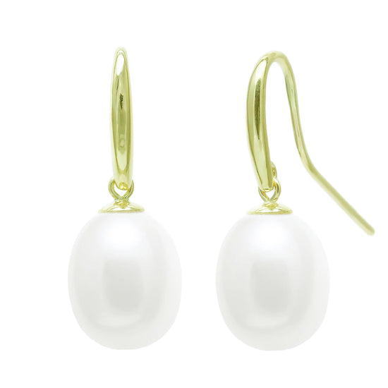 9ct Yellow Gold Freshwater Pearl 9-10mm Drop Earrings