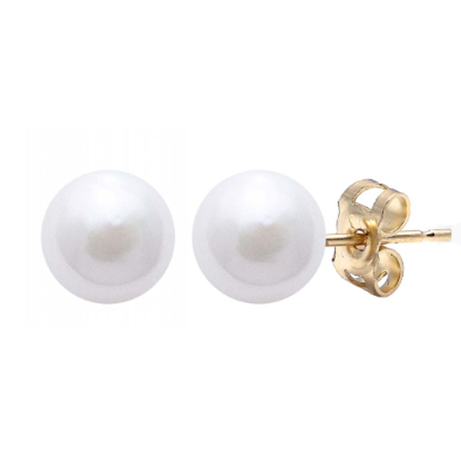 9ct Yellow Gold 7-7.5Mm Cultured Akoya Pearl Stud Earrings