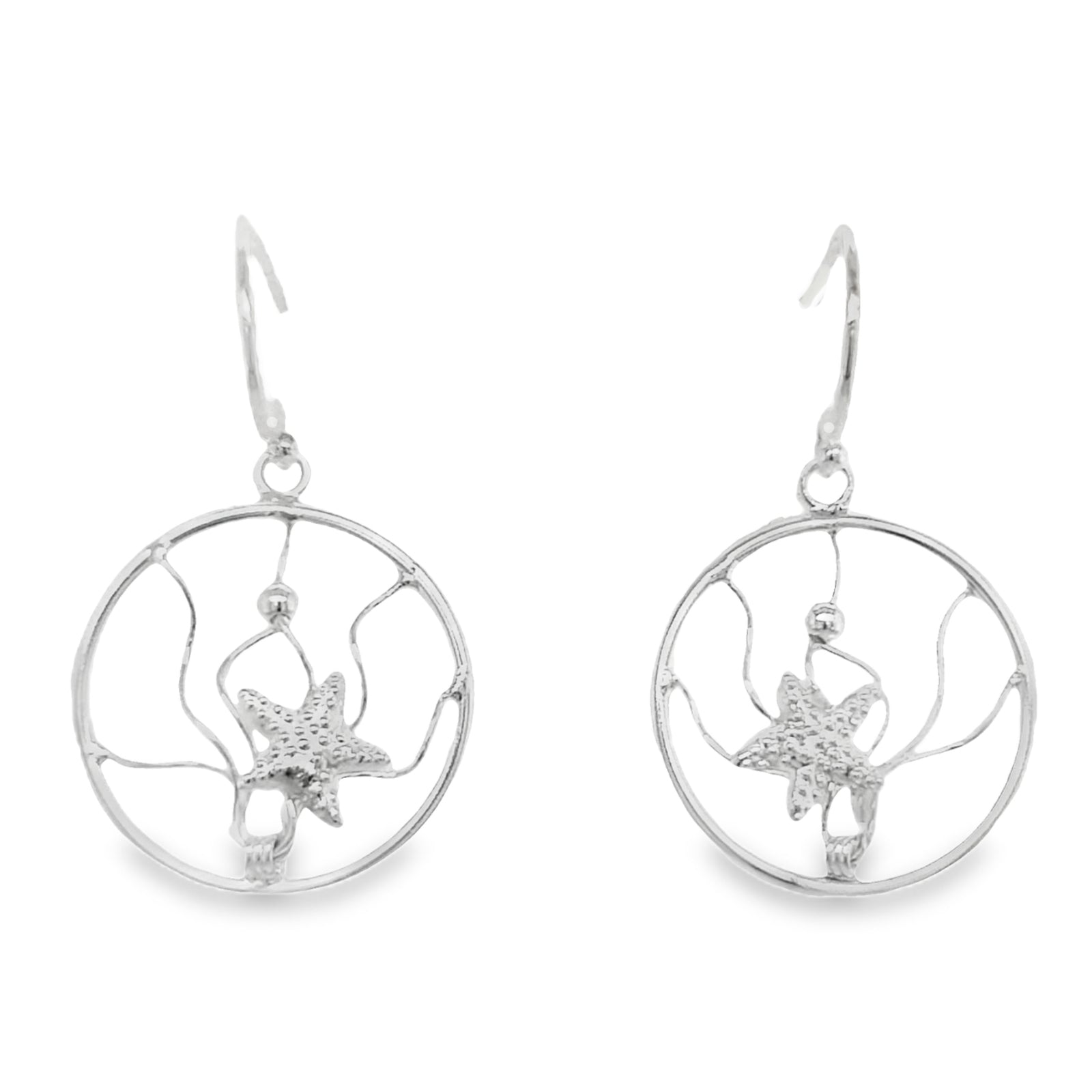 Silver 18mm Circle & Starfish Drop Earrings