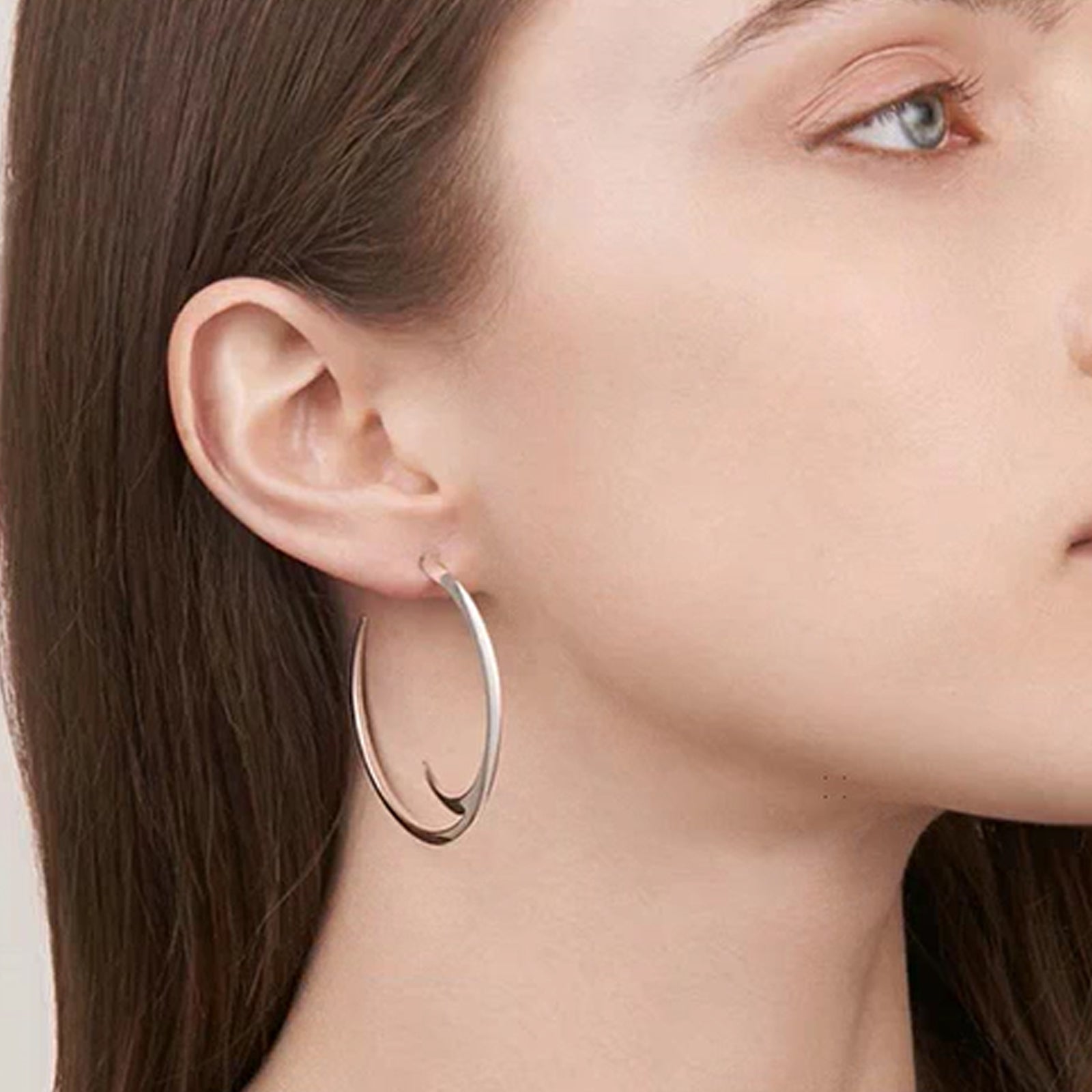 Bold & Iconic Claw Earrings. Talon Cat Claw Hoop Earrings are handcrafted from sterling silver. With a diameter of 45mm, an open-back curve tapers front to back, graduating to a point, its sides flattened, with sinuous twists turning inwards. Designed with a left and right side, a single handcrafted ?Âclaw?À curls away from the face, alive with energy, integrating with the natural lines of the face. Oversized and sculptural, our hoops combine Talon and Cat Claw silhouettes; organic shapes that mirror those found in the natural world, inspired by our House code, Fauna - jewels with an aura. Visceral, tactile, memorable, our Talon Cat Claw Large Hoop Earrings balance elegance with something more edgy, taking you from day to evening.