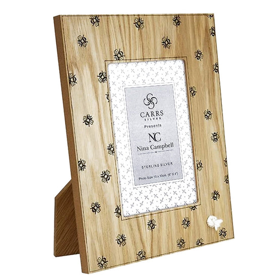 This delightful photo frame has a bee motif buzzing all round it and finished with a silver bee in the bottom righthand corner. A perfect girt for nature and bee lovers.