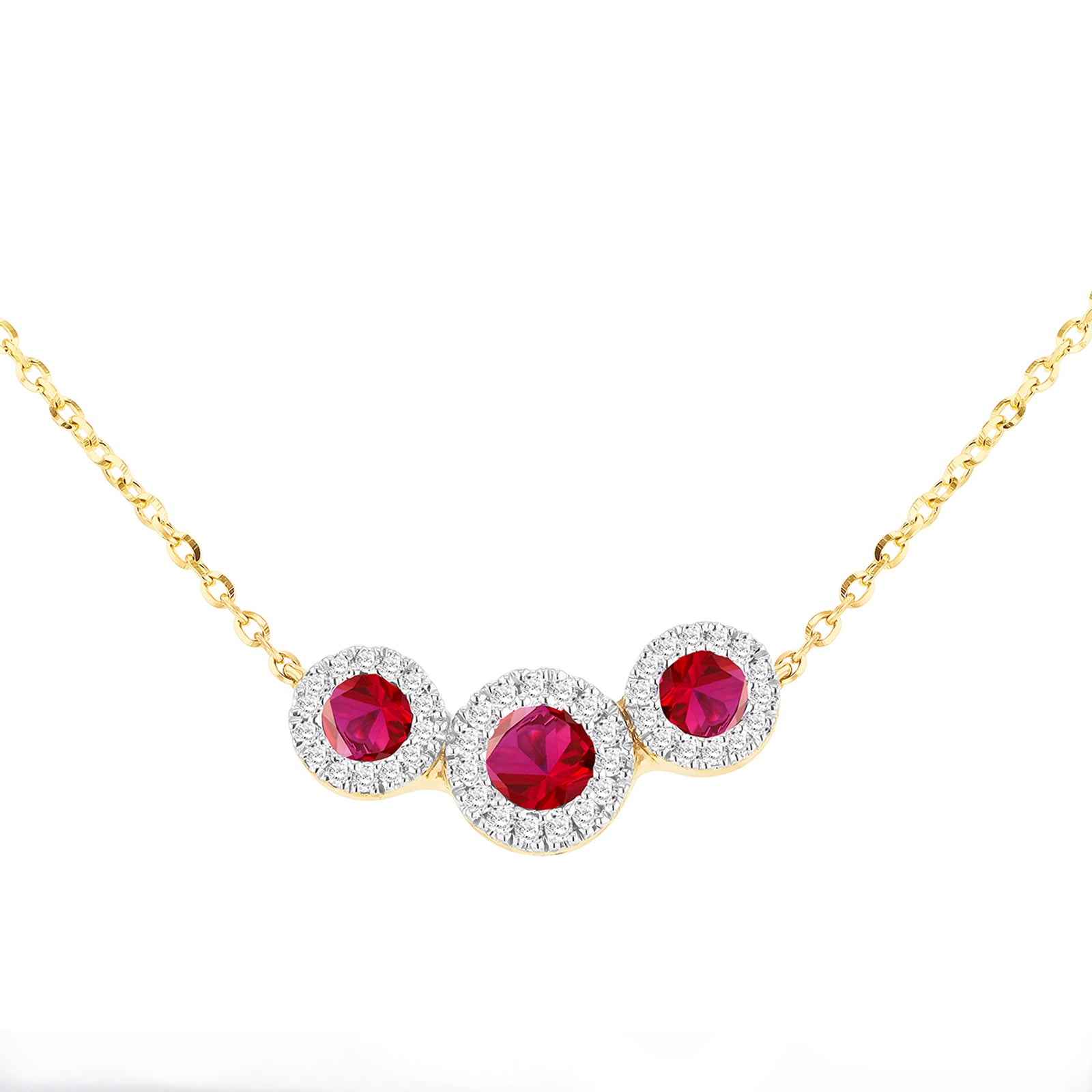 9ct Yellow Gold Diamond Laboratory Grown Ruby Trio Cluster Necklet