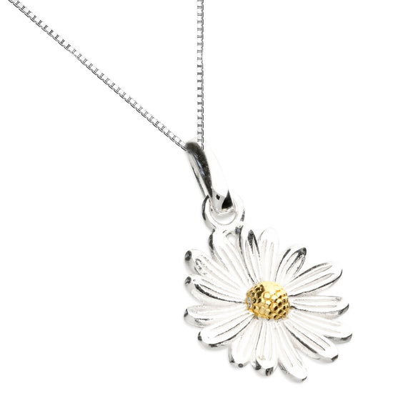 Sterling Silver Pendant 2-colour gold-plated Daisy April birth flower, Pendant ONLY. The perfect chain would be 2341-46 or 2342-45.