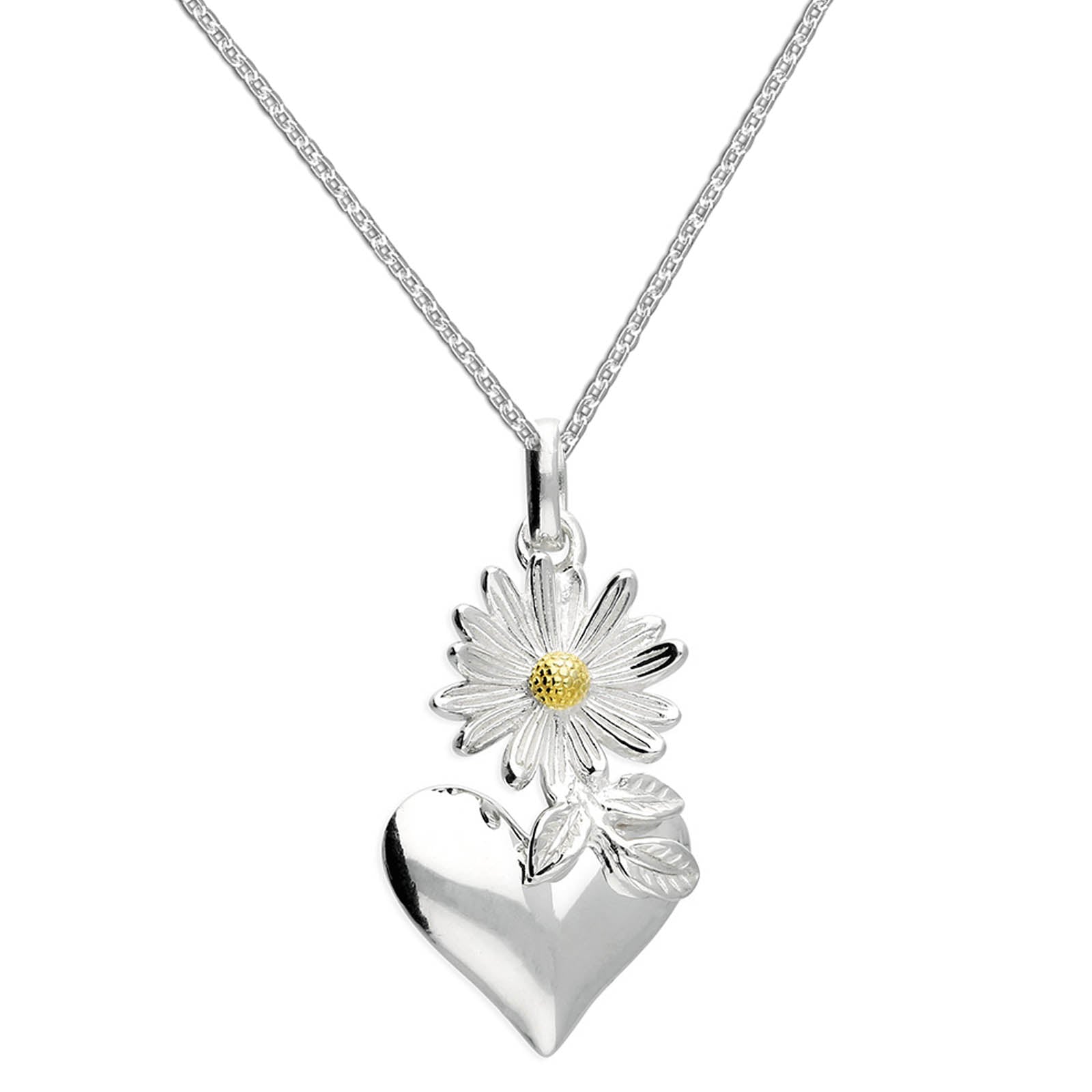 Sterling Silver & Gold Plated Daisy Heart Pendant