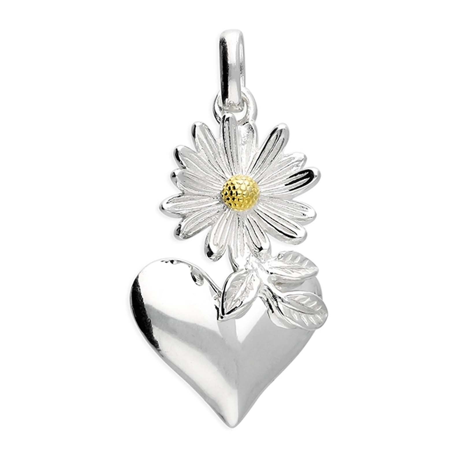 Sterling Silver Pendant Two-colour yellow gold-plated daisy with silver heart. This is Pendant ONLY. Chain sold sperate. (Perfect chain 2341-46 or 2342-45).