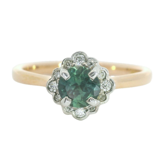 18ct Rose Gold Teal Sapphire & Diamond Cluster Ring