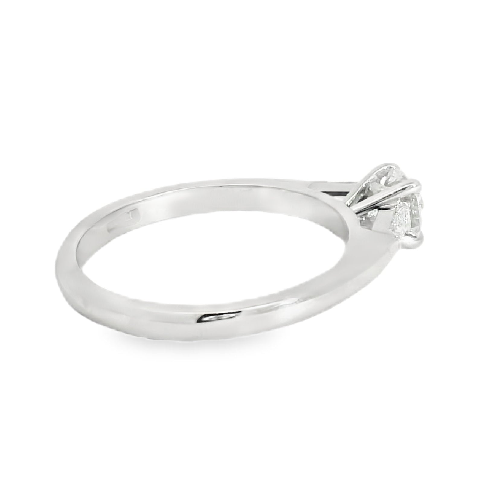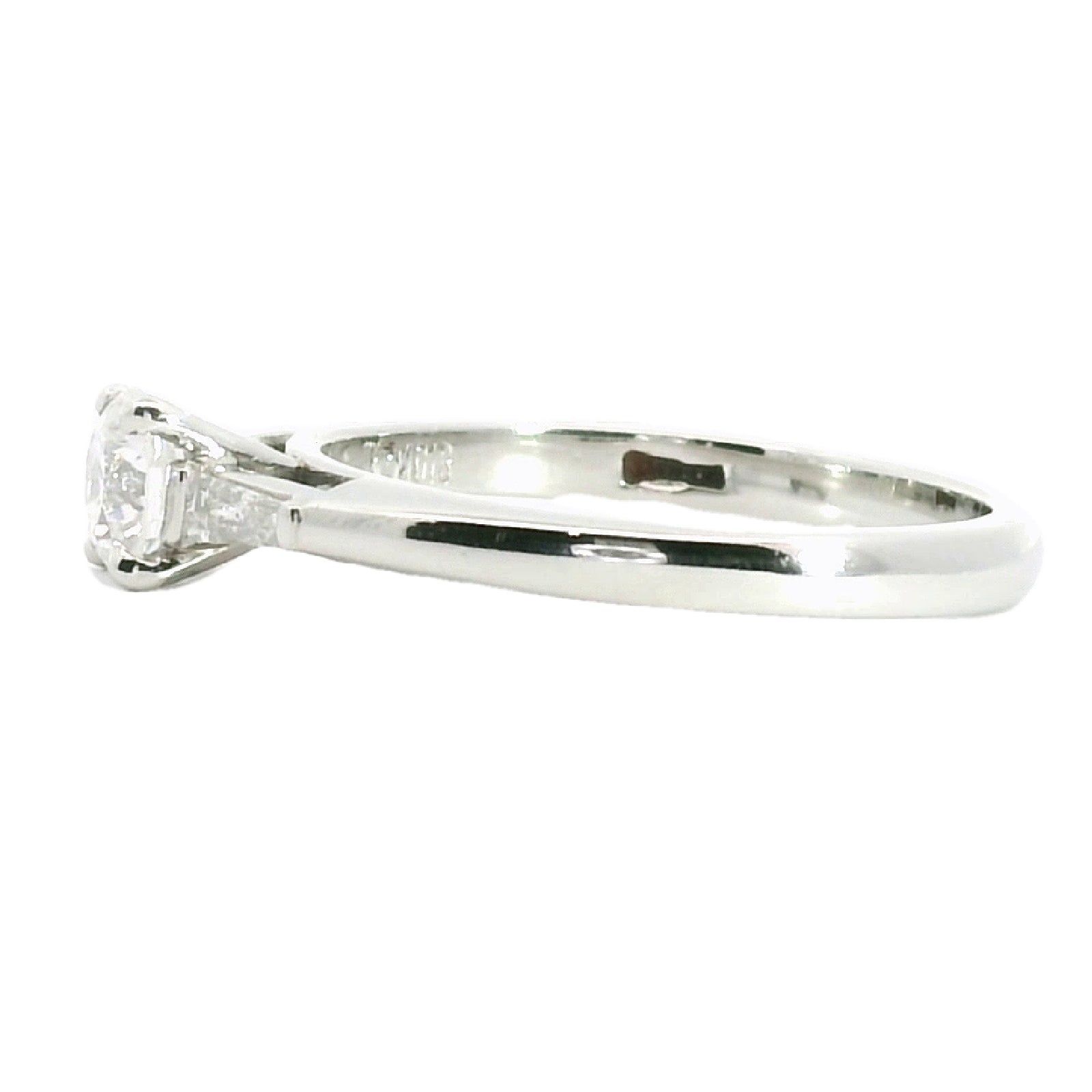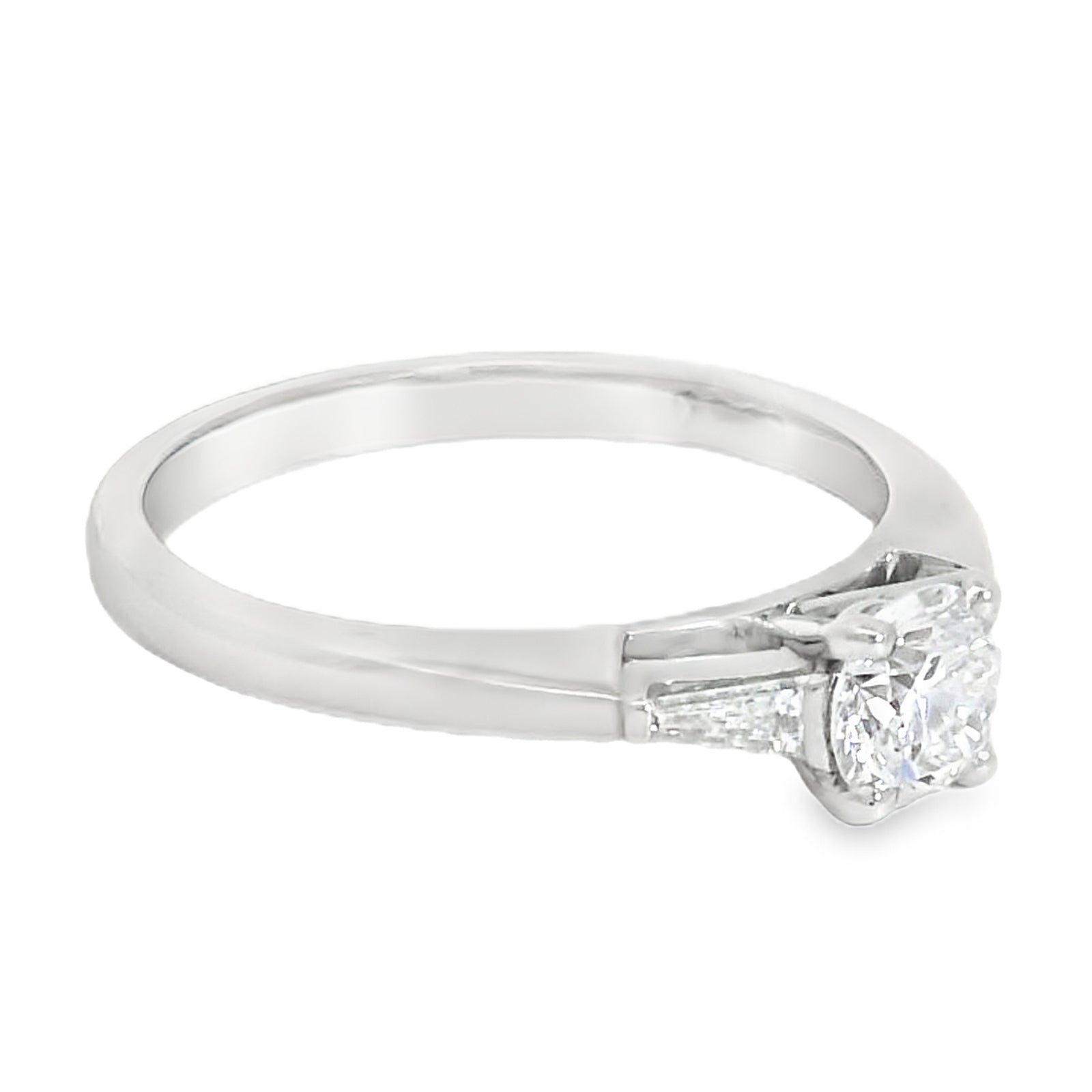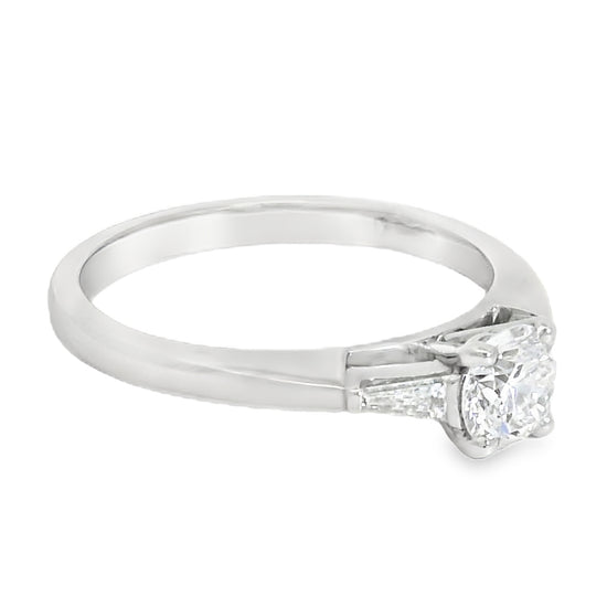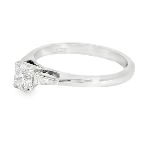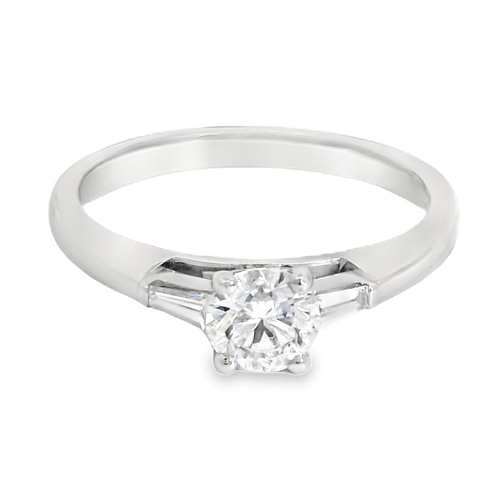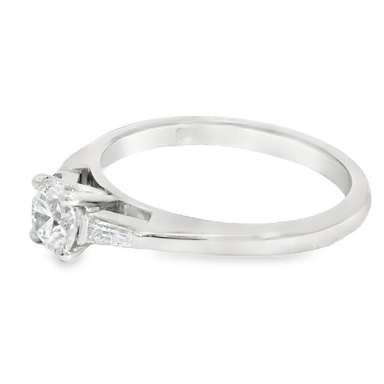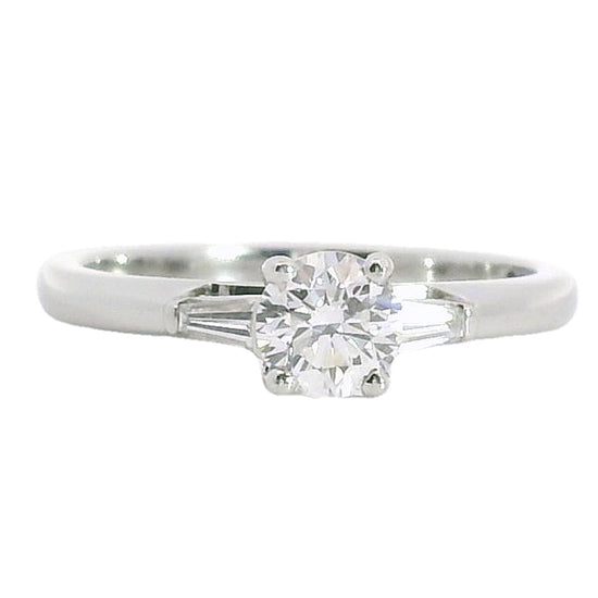 Platinum 0.63ct Round & Baguette Cut Diamond Solitaire Ring