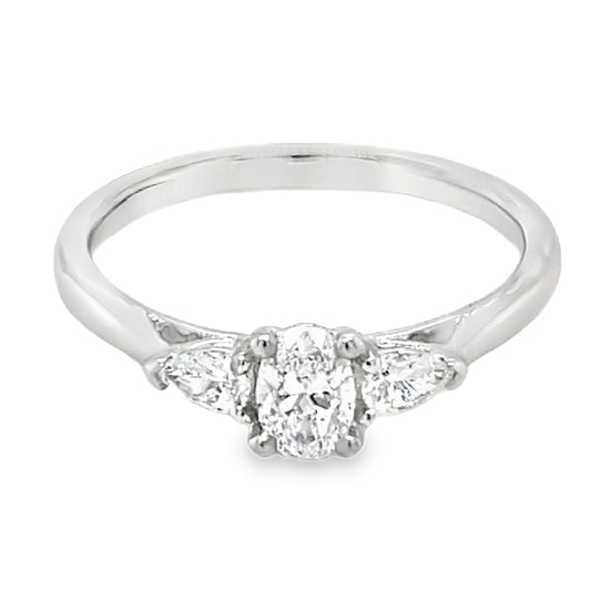 Platinum Diamond Oval & Pear Cut 0.48ct Trilogy Ring