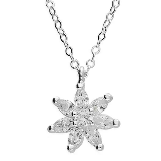 Silver Cubic Zirconia Flower 41-46cm Necklace