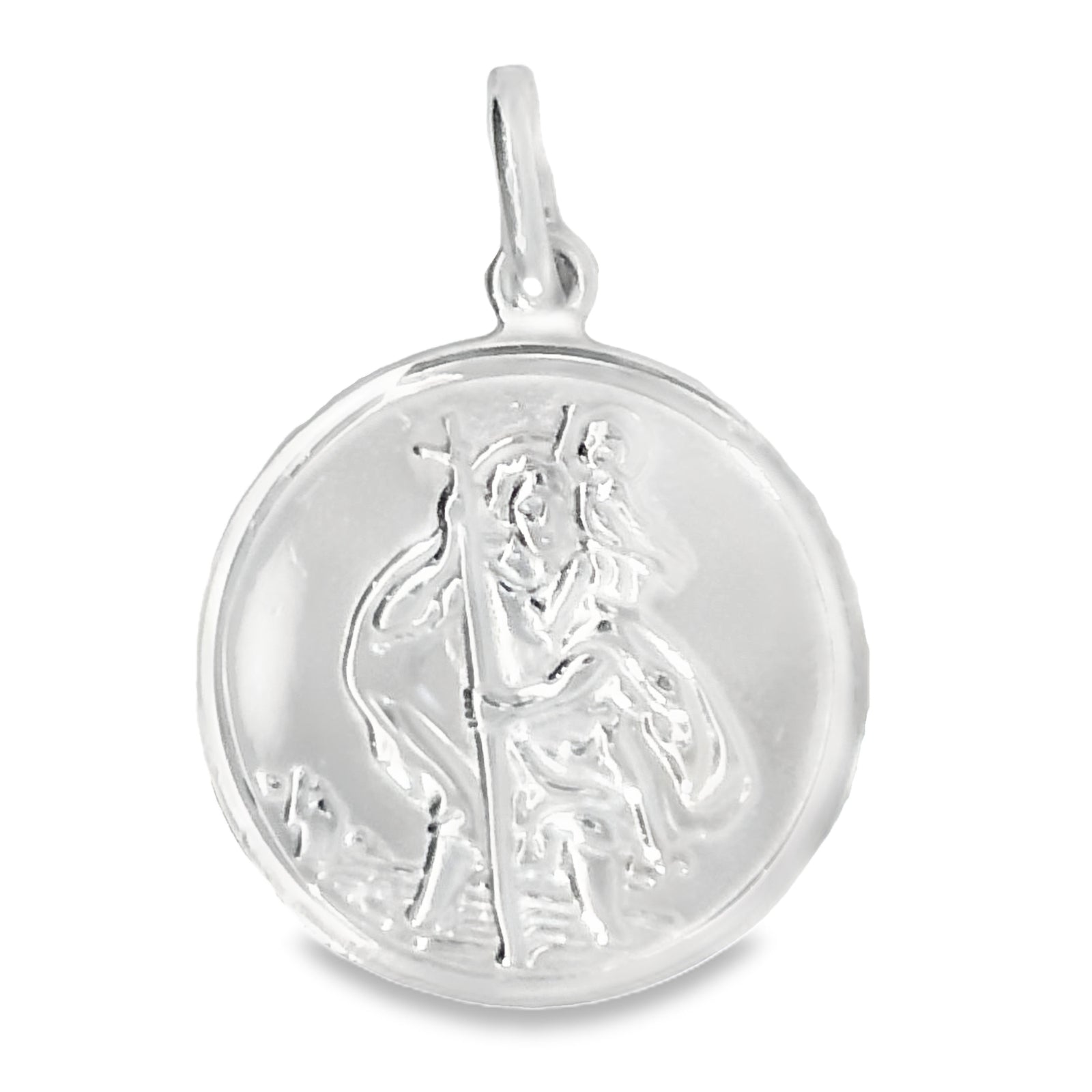 Silver 17mm Plain Polished Round St Christopher Pendant