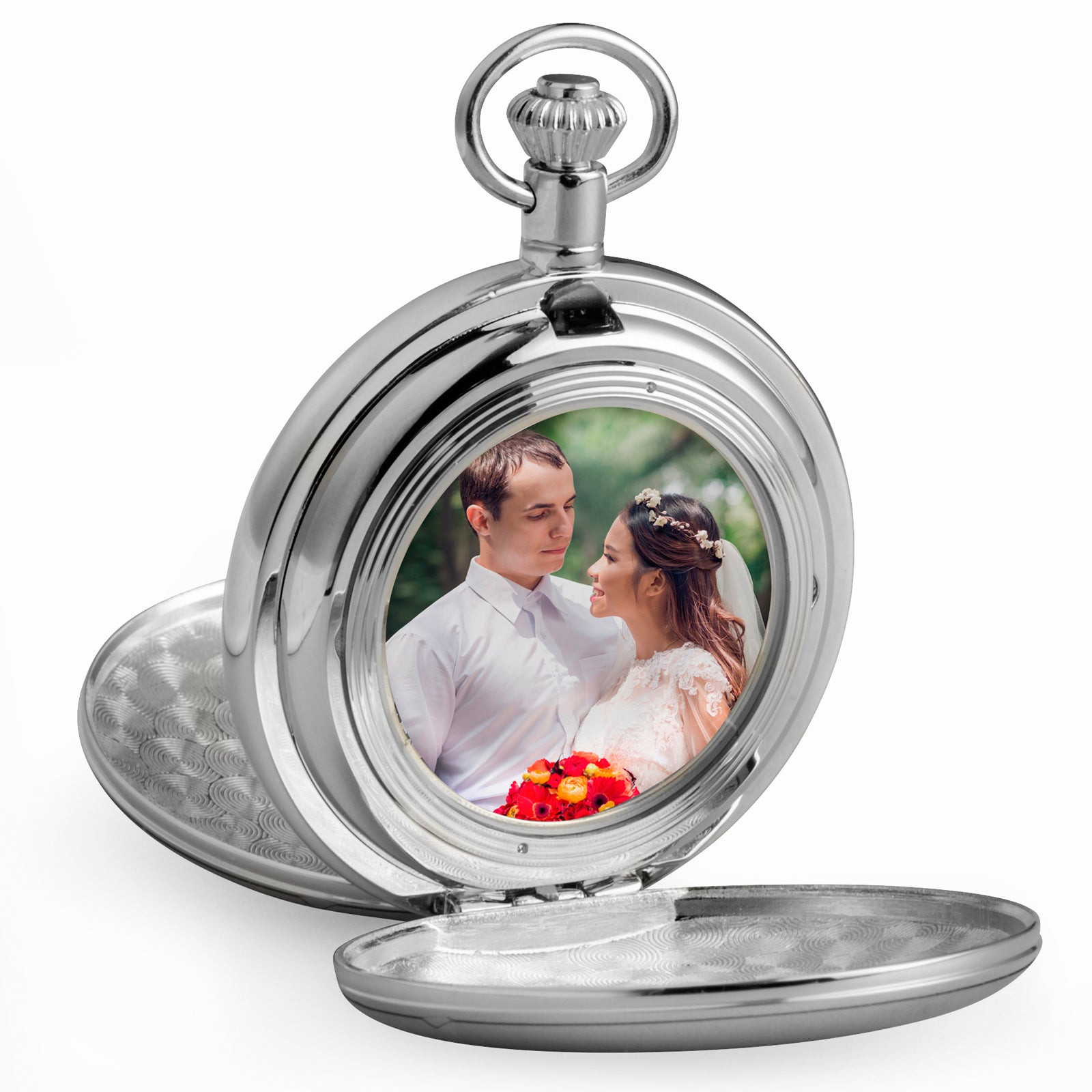 Chrome Quartz Full Hunter Photo Pocket Watch