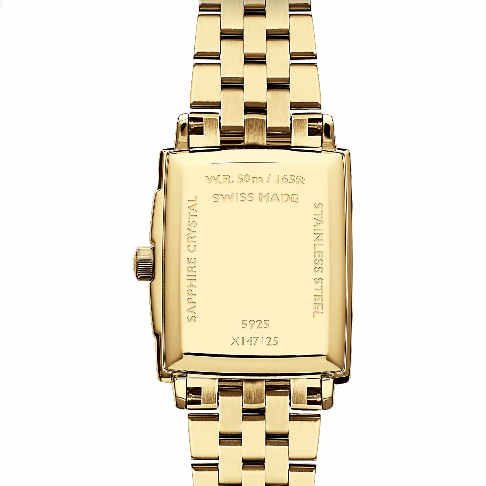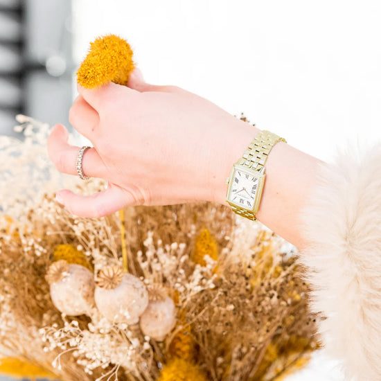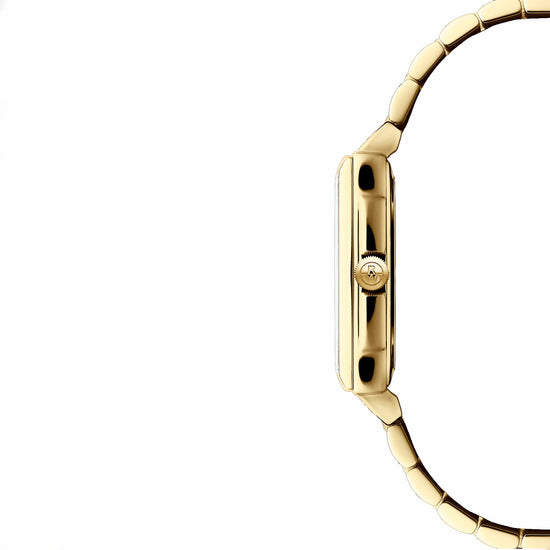 A popular style in the art deco era of the 1920s and 1930s, square-faced watches are making a chic new revival. RAYMOND WEIL introduces this design in the form of our ever-classic and popular ladies’ toccata collection. This new quartz model adopts a sophisticated art deco appeal with an elongated rectangular face and slim 6.25 mm case. This is our shallowest case design to date which gives a very sleek profile to this watch. This timepiece of choice is available in several variations. The face comes in combinations of black roman numerals on a crisp white dial or alternating gold & diamond indexes on a mother-of-pearl face. The sapphire crystal window is framed by a beveled rectangular case. The tiered design gives this watch an illusion of depth without the thickness. The watch is completed with RW monogram signature upon the crown.Technical datas Collection:;toccata Size: Ladies Shape:Rectangular Movement:Quartz Movement Caliber Height:2.5 mm Case Material:Stainless steel with yellow gold PVD plating Case size:22 mm x 28 mm Case Thickness:6.25 mm Case Back:Snapped Water Resistance: 50 m, 165 ft, 5 atm Crystal: Sapphire Dial:White, with Roman numerals Crown: With RW logo Clasp: Stainless steel folding clasp with double push-security system Bracelet Stainless steel with yellow gold PVD plating