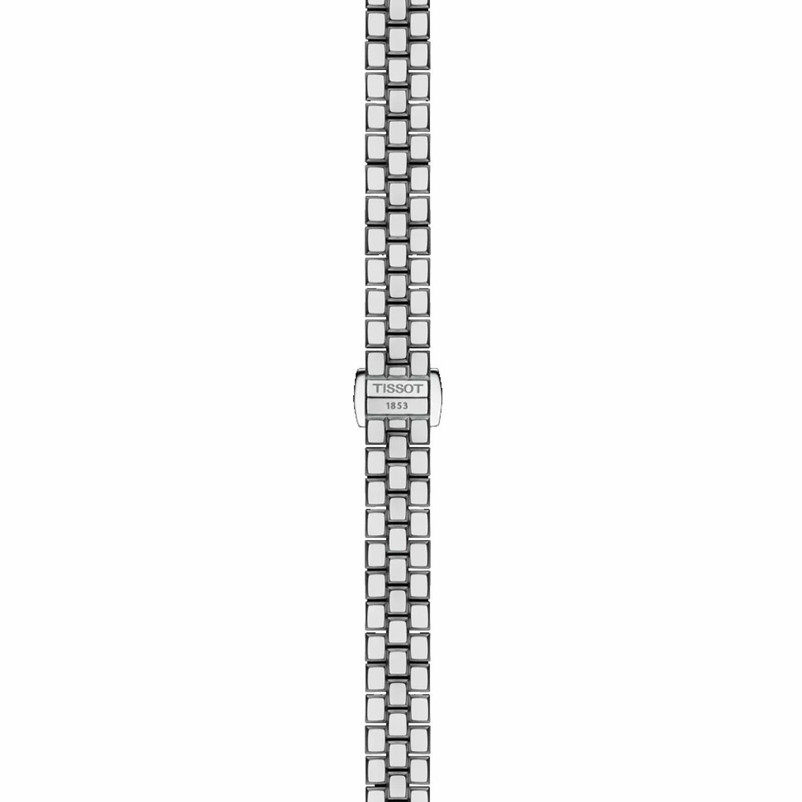 This dazzling model with a discreet square case embodies the very essence of elegance. It comes with a leather strap or a metal bracelet, with or without diamonds for a touch of sparkle. It is worn loosely on the wrist, like a piece of jewelry. Totally irresistible, the Tissot Lovely lives up to its name. About the watch SKU T0581091104101 Collection Classic Traditional Weight (g) 40.00 Warranty 2 Years of Warranty Country of manufacture Switzerland Case & crystal Length (mm) 20.00 Width (mm) 20.00 Thickness (mm) 7.10 Lug width (mm) 9.00 Water resistance Water-resistant up to a pressure of 3 bar (30 m / 100 ft) Case shape Square Case material 316L stainless steel case Crystal Scratch-resistant sapphire crystal Movement Energy Quartz Movement Swiss quartz Battery Battery type Renata 321 Dial HM (Hour, Minute) Caliber 5 1/2''' x 6 3/4''' Diameter (mm) 13 x 15.15 Dial Dial colour Blue Indexes Indexes Strap Strap/Chain reference T605048848 Strap colour Grey Buckle Butterfly clasp with push-buttons Links reference T613048929