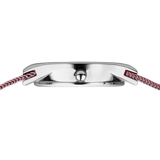 Feminine clarity – Scandinavian design in delicate pink This ladies watch from the BERING Classic Collection brings a fresh touch of colour to minimalist design. The polished silver stainless steel oval case frames a radiant pink dial, accented with sparkling crystal hour markers – striking the perfect balance between clean simplicity and refined elegance. The pink Milanese strap wraps softly around the wrist, harmonising beautifully with the dial. Flat sapphire crystal protects the surface, ensuring lasting brilliance. Powered by a precise quartz movement and water-resistant to 3 ATM, this watch is a reliable companion for everyday wear. It combines lightness, feminine style, and Nordic clarity in a distinctive design. A statement for women who love minimalism – refined with a touch of colour. Collection: Classic Product type: watch Gender: female Glass type: flat sapphire crystal Movement type: quartz Case colour: polished silver Case material: stainless steel Case type: oval Strap colour: pink Strap material: Milanese Dial colour: pink Water proofness: 3 ATM