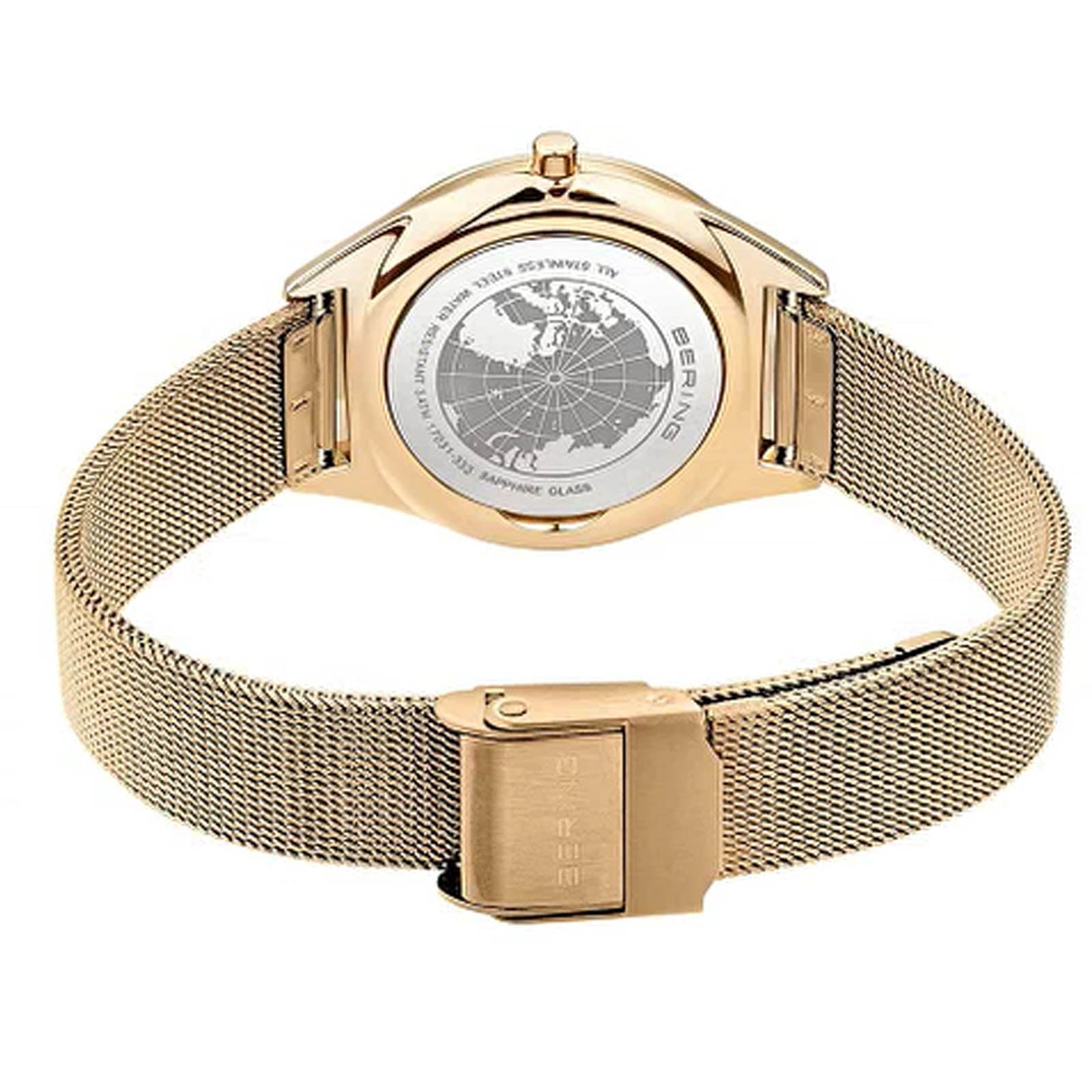 Lightness meets timeless elegance – the BERING Ultra Slim in gold. Slimmer than a sunbeam on Arctic ice: the BERING Ultra Slim embodies the essence of minimalist beauty at its most elegant. With a case height of just 5 mm, it hugs the wrist almost weightlessly – refined, understated, and quietly noble. The oval case made of shiny gold-coloured stainless steel gives the watch a modern, almost sculptural silhouette, while the fine mesh Milanese strap with folding clasp ensures a flowing, comfortable fit. The matt champagne dial is deliberately minimalist – no numerals, no distractions, just the calm clarity of Scandinavian design. Slim indices and delicate golden hands reflect the understated elegance that defines BERING. Protected by flat, scratch-resistant sapphire crystal – a clear promise of durability and quality. Inside, a precise quartz movement ensures accurate timekeeping. With a 31 mm diameter and 3 ATM water resistance, it’s the perfect companion for those who seek style in its purest form – beyond trends or gender. A piece for purists – and a quiet expression of personality. BERING Ultra Slim: Reduction to the essential, perfected in gold. Collection: Ultra Slim Product type: watch Gender: unisex Glass type: flat sapphire crystal Movement type: quartz Case colour: polished gold Case material: stainless steel Case length: 37mm Case height: 5mm Case width: 31mm Case diameter: 31mm Case type: oval Strap colour: gold Strap material: Milanese Strap length: 180mm Strap width: 14mm Clasp: safety clasp Dial colour: champagne Water proofness: 3 ATM