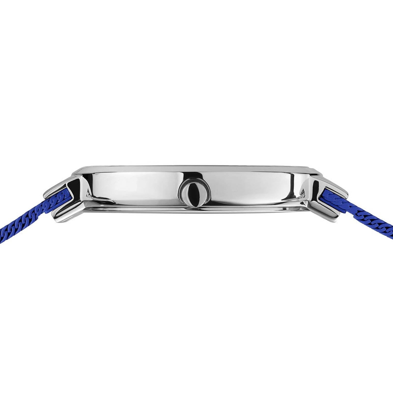 This watch is particularly captivating with its Sunray dial in metallic look, which is reminiscent of the magical hues of the polar lights. The models in the Classic AURORA collection transfer this magic to the dial: a fascinating interplay of luminous, iridescent hues. Purist Danish design with the courage to be extravagant. Only high-quality materials are used for the watches in the Classic AURORA collection, such as particularly hard, crystal-clear and scratch-resistant sapphire crystal. This means that time leaves no traces on this watch glass. The skin-friendly stainless steel used guarantees a glamorous appearance. The cool look of the steel and the purist, clear line of the BERING watch design complement each other ideally. The case - polished or brushed - is made of pure and high-quality stainless steel (316L), as also used in medical technology. Puristic stainless steel is combined with delicate, supple Milanaise straps in the Classic AURORA watch collection. Classic elegance meets an unmistakably pleasant wearing sensation and ensures the classically noble BERING look. Collection: Sale Product type: watch Gender: female Glass type: flat sapphire crystal Movement type: quartz Case color: polished silver Case material: stainless steel Case length: 37 mm Case height: 6 mm Case width: 31 mm Case diameter: 31 mm Case type: round Strap color: blue Strap material: milanese Strap length: 180 mm Strap width: 14 mm Clasp: safety clasp Dial color: multicolor Dial Material: sunray Water proofness: 5 ATM