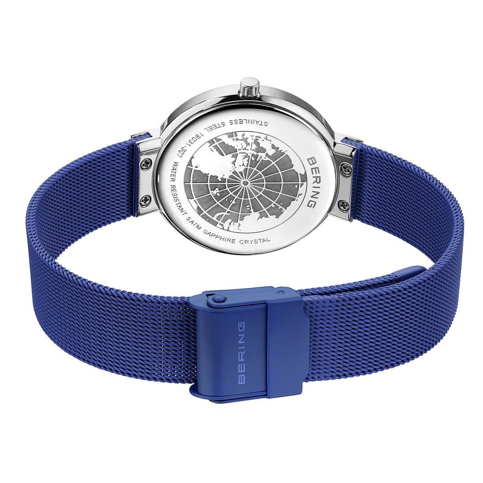 Bering Ladies Classic Blue Polished Silver Case Watch 19031-307