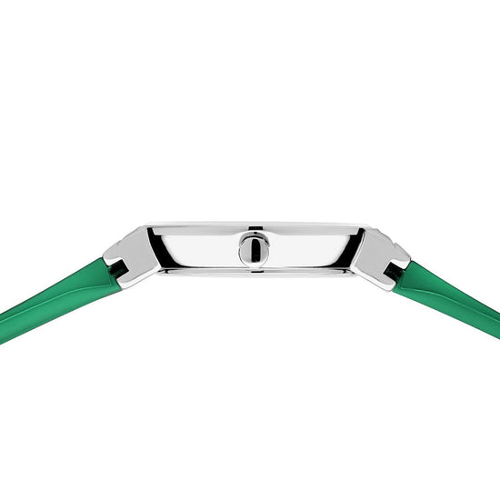 The 29 mm polished stainless steel case in silver flows harmoniously into the red silicone strap, which is soft, flexible, and especially comfortable to wear. Secured with a classic pin buckle, the watch sits safely and elegantly on the wrist. A flat sapphire crystal provides lasting protection against scratches, while the precise quartz movement ensures accurate timekeeping. With water resistance up to 3 ATM, this model is a charismatic companion that masterfully combines vibrant colour with Nordic simplicity. Collection: Classic Product type: watch Gender: female Glass type: flat sapphire crystal Movement type: quartz Case colour: polished silver Case material: stainless steel Case length: 35mm Case height: 6mm Case width: 29mm Case diameter: 29mm Case type: round Strap colour: green Strap material: silicone Strap length: 175mm Strap width: 14mm Clasp: pin buckle Dial colour: green Dial Material: sunray Water proofness: 3 ATM