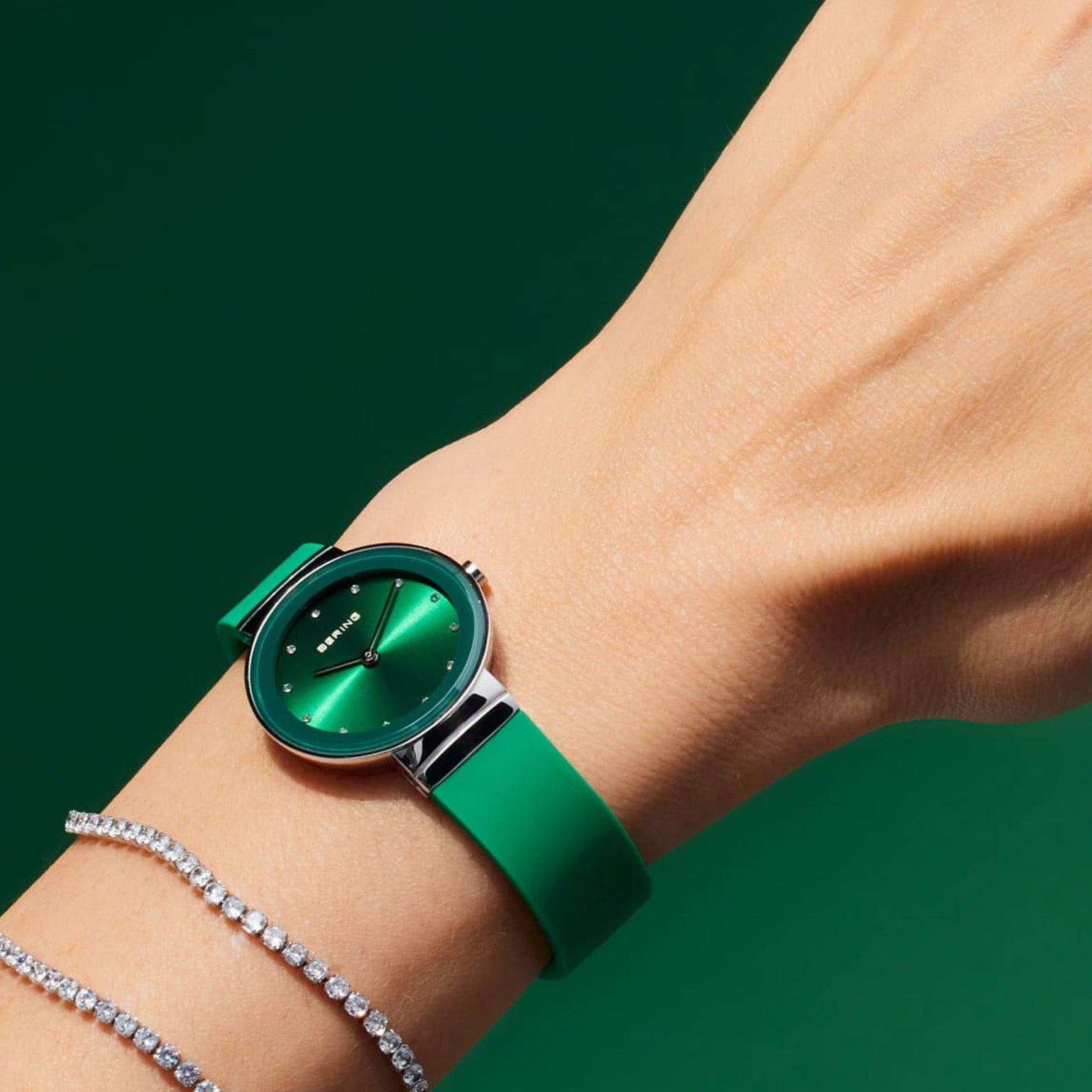 Bering Ladies Slim Classic Green Silicone Quartz Watch 10129-808