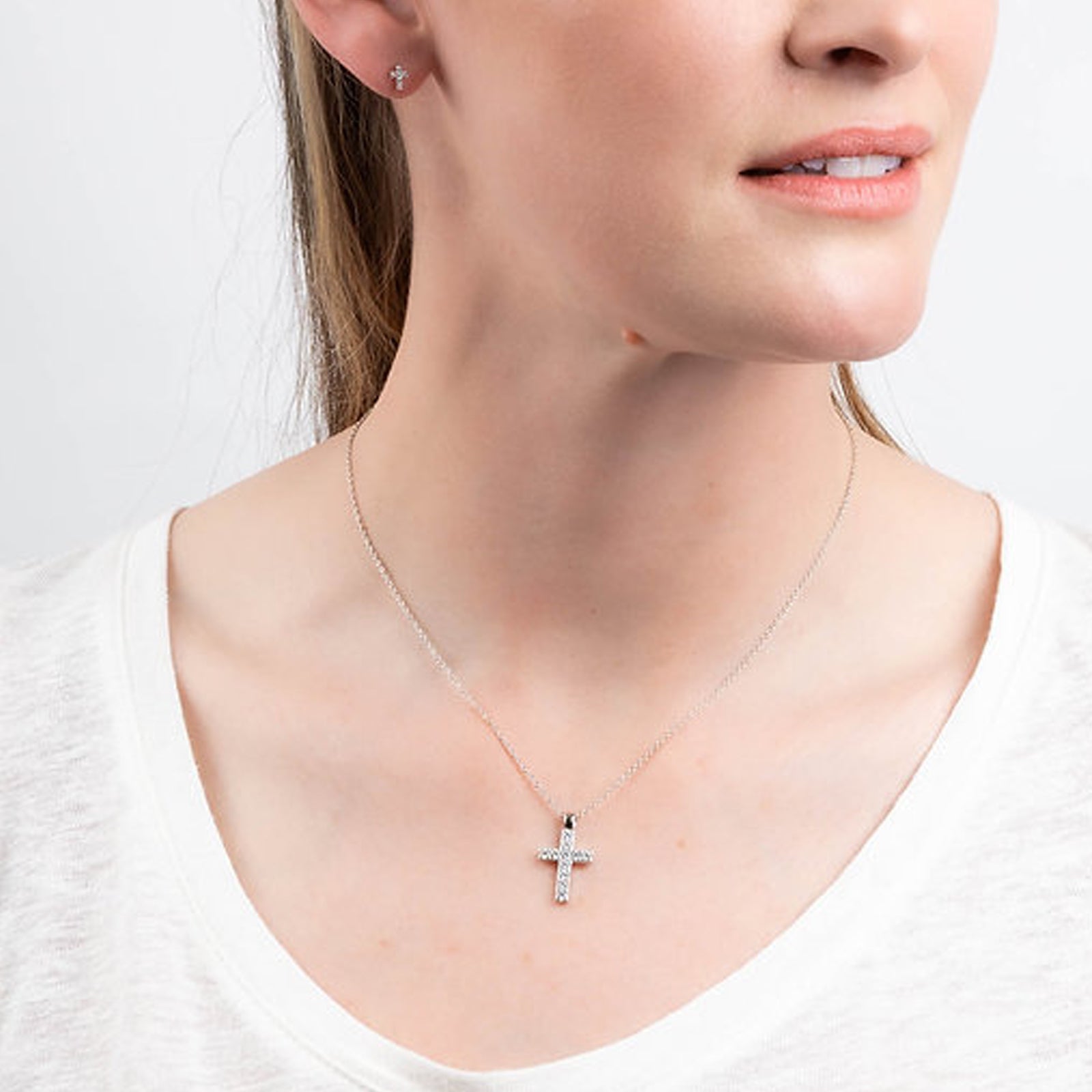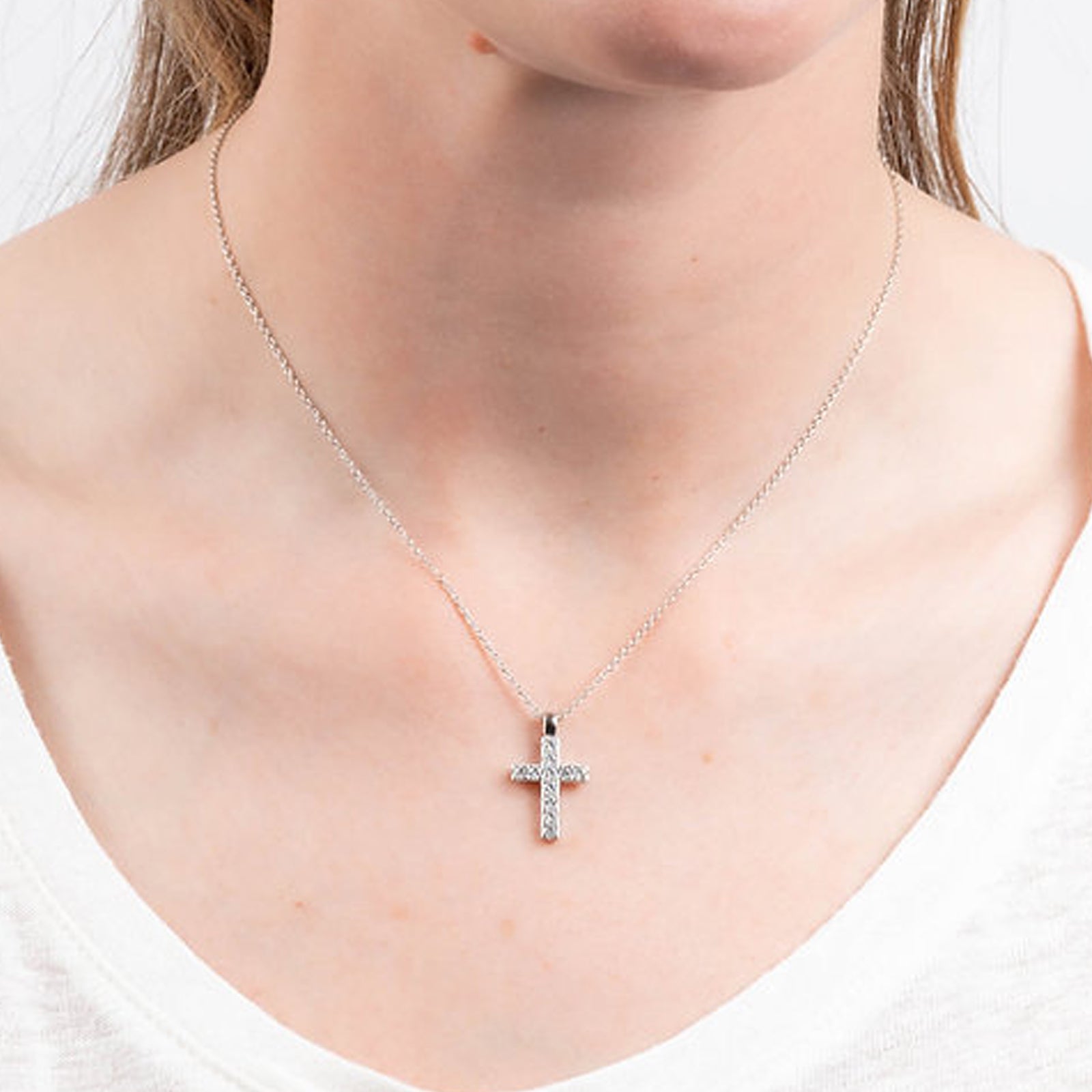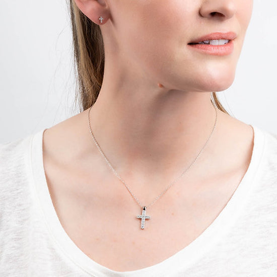 Diamonfire Silver Cubic Zirconia Cross Pendant & Chain Necklace