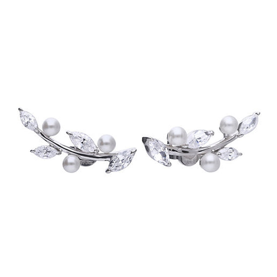 Diamonfire Silver Cubic Zirconia & White Pearl Crawler Stud Earrings