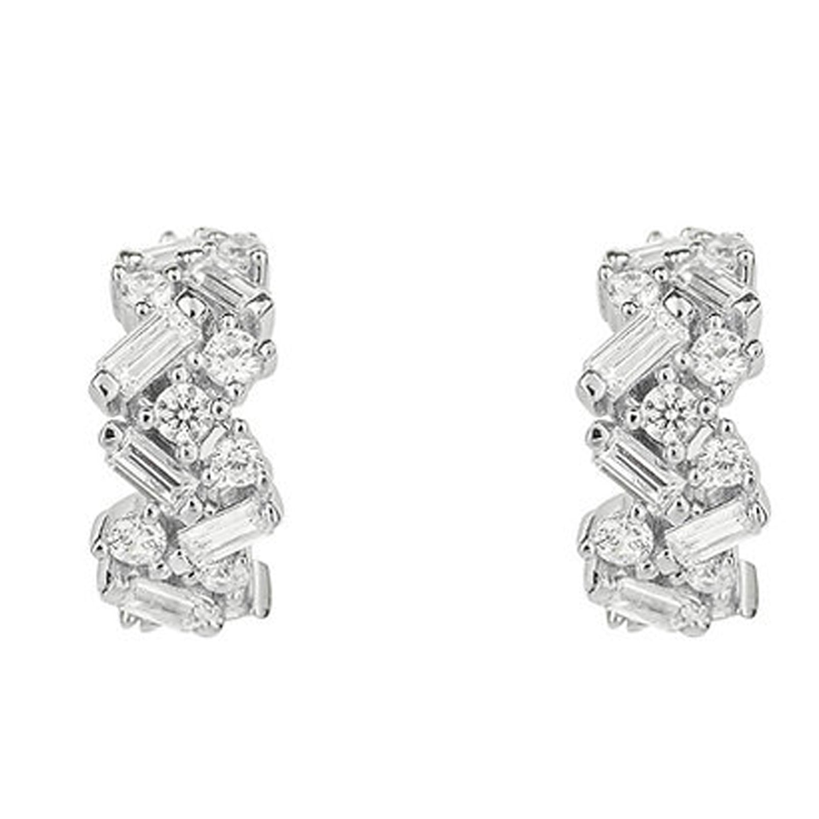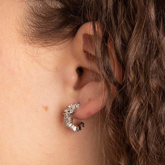 Modernise your jewellery collection with these stunning hoop earrings. Featuring dazzling baguette Diamonfire zirconia stones (1.86ct), these earrings are sure to style up your outfit for any occasion. Why not stack with other Diamonfire earrings for serious sparkle or pair with the matching necklace and ring for a co-ordinated look.  Diamonfire cubic zirconia stones are each cut and polished to mirror the brilliance of a genuine diamond. Each piece in the collection is crafted in sterling silver with a triple plated finish of palladium, platinum and rhodium, for an almost life-long tarnish protection. Composition: These earrings are made from sterling silver with a triple plated finish of palladium, platinum and rhodium. Stones are Diamonfire cubic zirconia. Total carat weight: 1.86ct Fitting: These earrings feature a secure post and butterfly style fastening