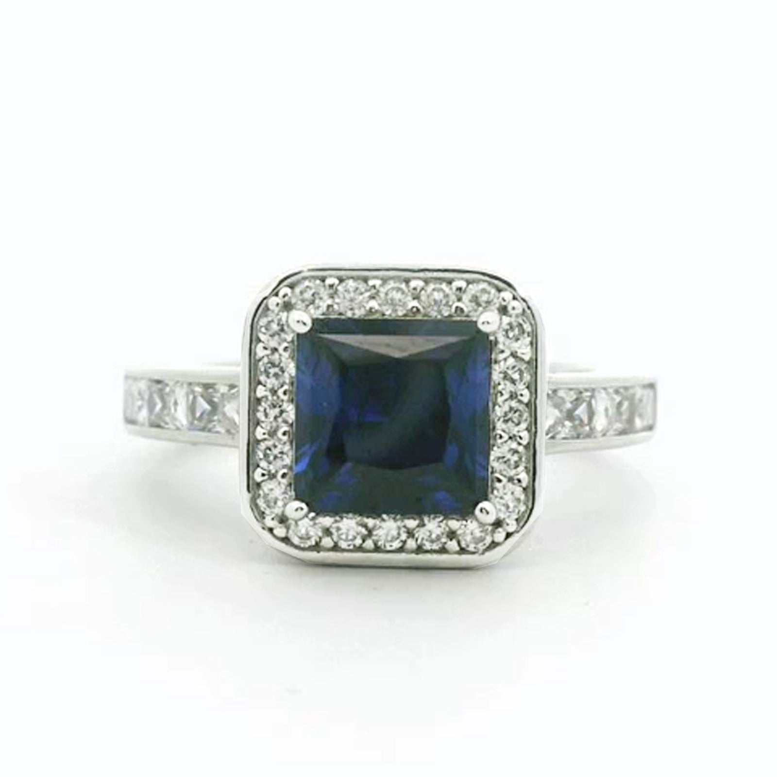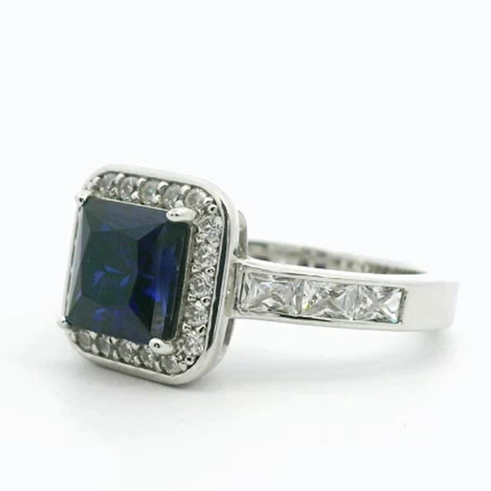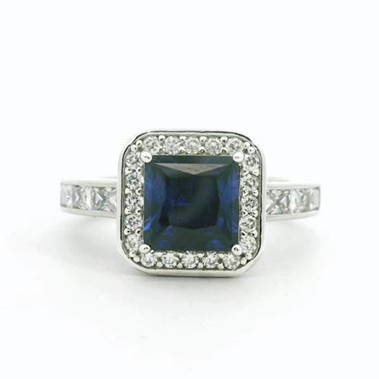 Diamonfire Silver Square Blue Cubic Zirconia Cluster Ring