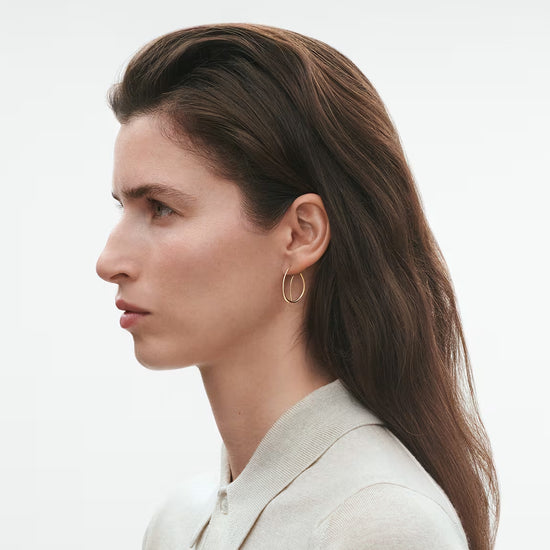 A contemporary version of the classic gold hoop, one that will never go out of style! The Offspring hoop earring is both light and delicate, and it brings something truly emotional to your everyday. The Offspring collection was created by American designer Jacqueline Rabun, and it is inspired by the unbreakable bond and unconditional love that exists between parent and child. The egg shape symbolises birth and the promise a new life holds. The double loop Offspring hoop is expertly crafted from 18 karat yellow gold. Product details Item number: 10015212 Materials: 18 kt. yellow gold Measurements: H: 25 mm / 0.98 inches. W: 20 mm / 0.79 inches. Design year: 2019 Launch year: 2019