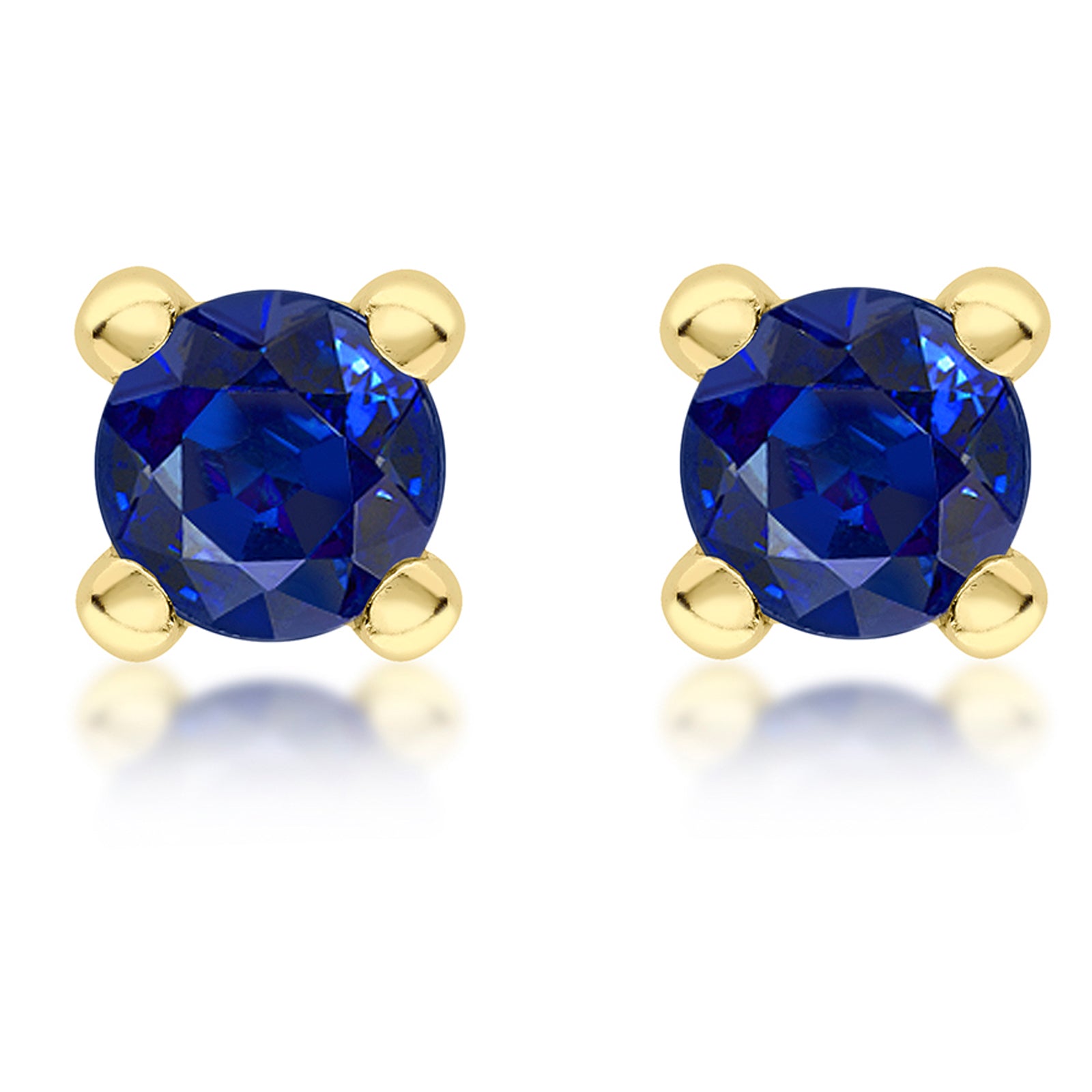 9ct yellow gold 4mm claw set dark blue cubic zirconia stud earrings. To represent the September birthstone.