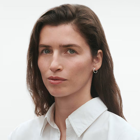 A bold and contemporary twist on traditional ear stud design. The Mercy ear stud wraps the ear lobe with smooth elegance, almost becoming at one with the wearer. Its fluid shape symbolises the transformation of life, and the soft curves represent the passage of time. Created for Georg Jensen by American designer Jacqueline Rabun, the Mercy collection is both expressive and emotional – and serves as a great example of how she merges a bigger meaning with appearance. The Mercy ear stud is expertly made from sterling silver. Product details Item number: 10015149 Materials: Sterling Silver Measurements: Ø: 14 mm / 0.55 inches. Design year: 2019 Launch year: 2019