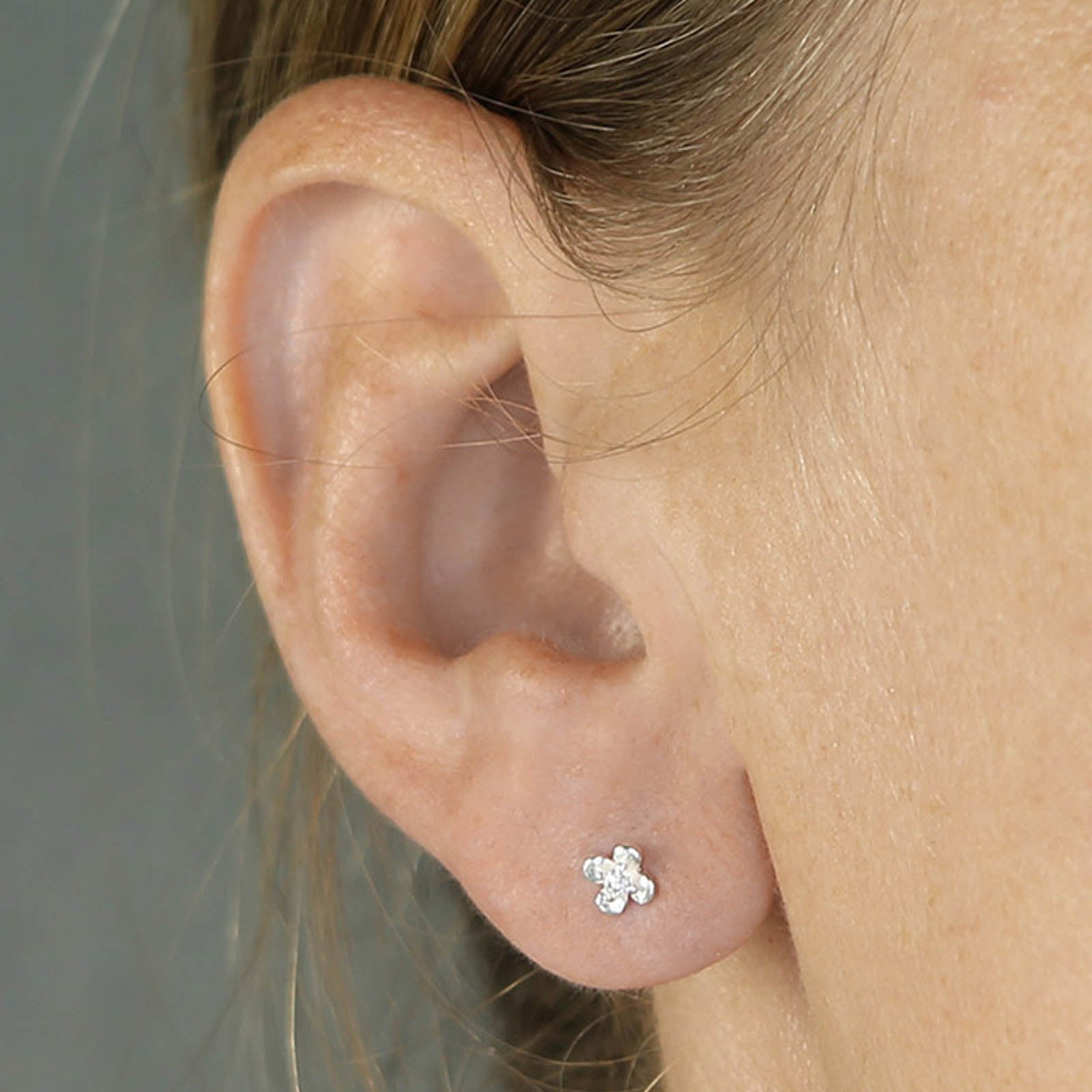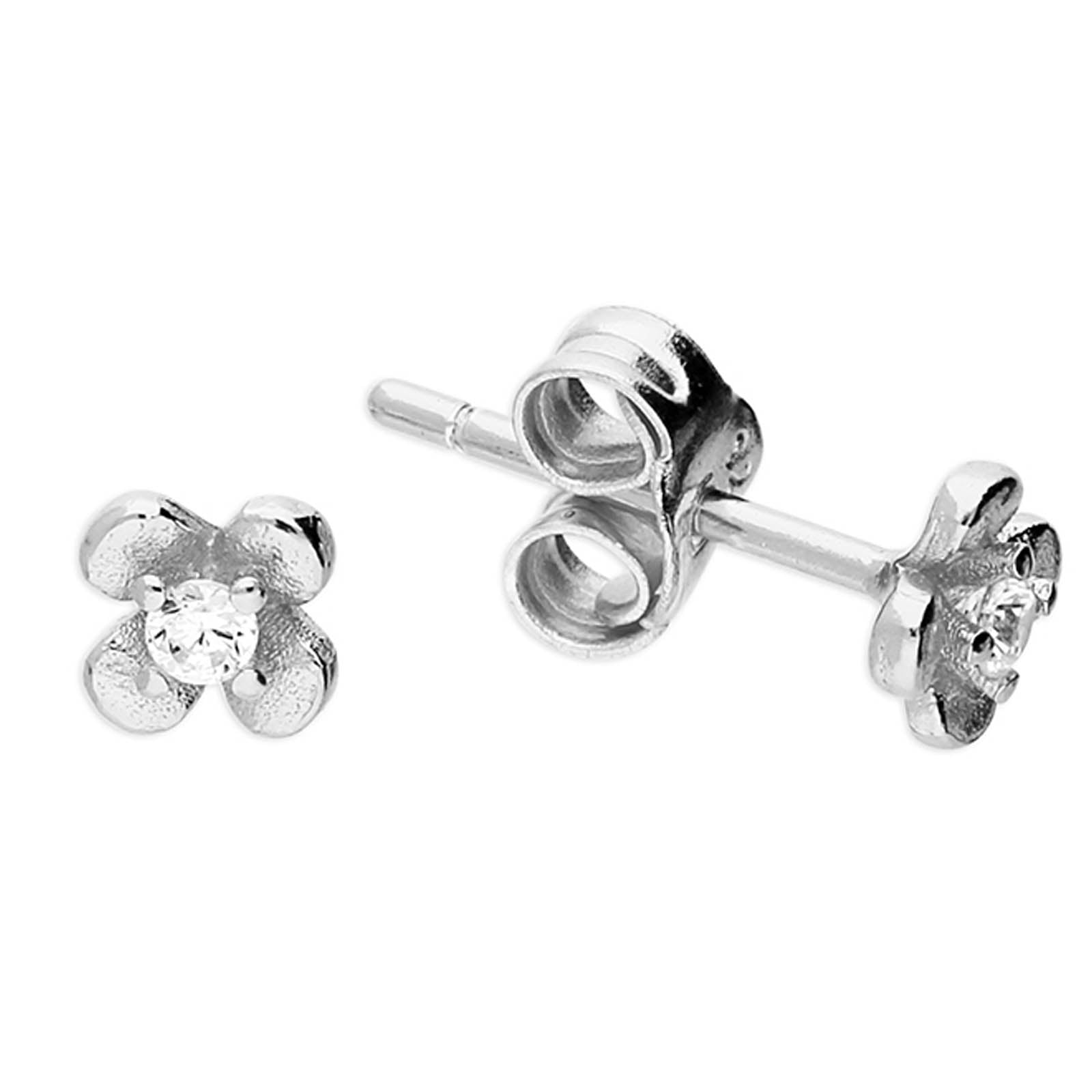 Sterling Silver Cubic Zirconia Tiny Flower Stud Earrings