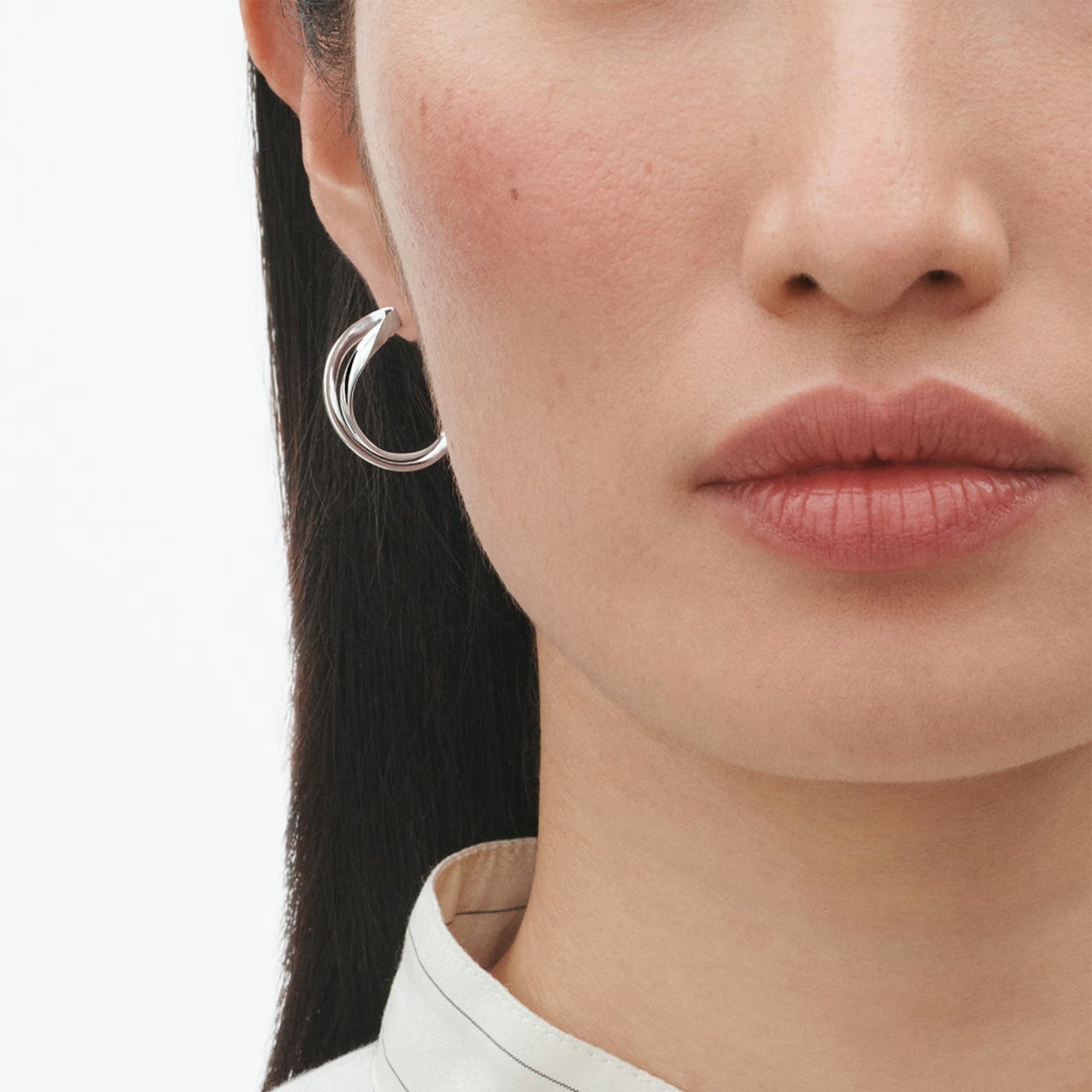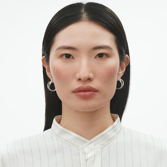 Taking as inspiration the mathematical symbol for infinity, with all its connotations of endless love, these small twists of sterling silver make elegant and sophisticated ear hoops. The fluid minimal shapes coil around the ear lobe, acting as a discrete enhancement of a woman’s natural beauty and stand as classic examples of contemporary Scandinavian design. Regitze Overgaard is renowned for her sensuous and minimal jewellery collections for Georg Jensen. Her use of organic natural shapes reveal her understanding of a woman’s body as well as her knowledge of craftsmanship and materials. The ear hoops are crafted from sterling silver and are suitable for pierced ears. Product details Item number: 3539283 Materials: Sterling Silver Measurements: L: 22 mm / 0.87 inches. Design year: 2012