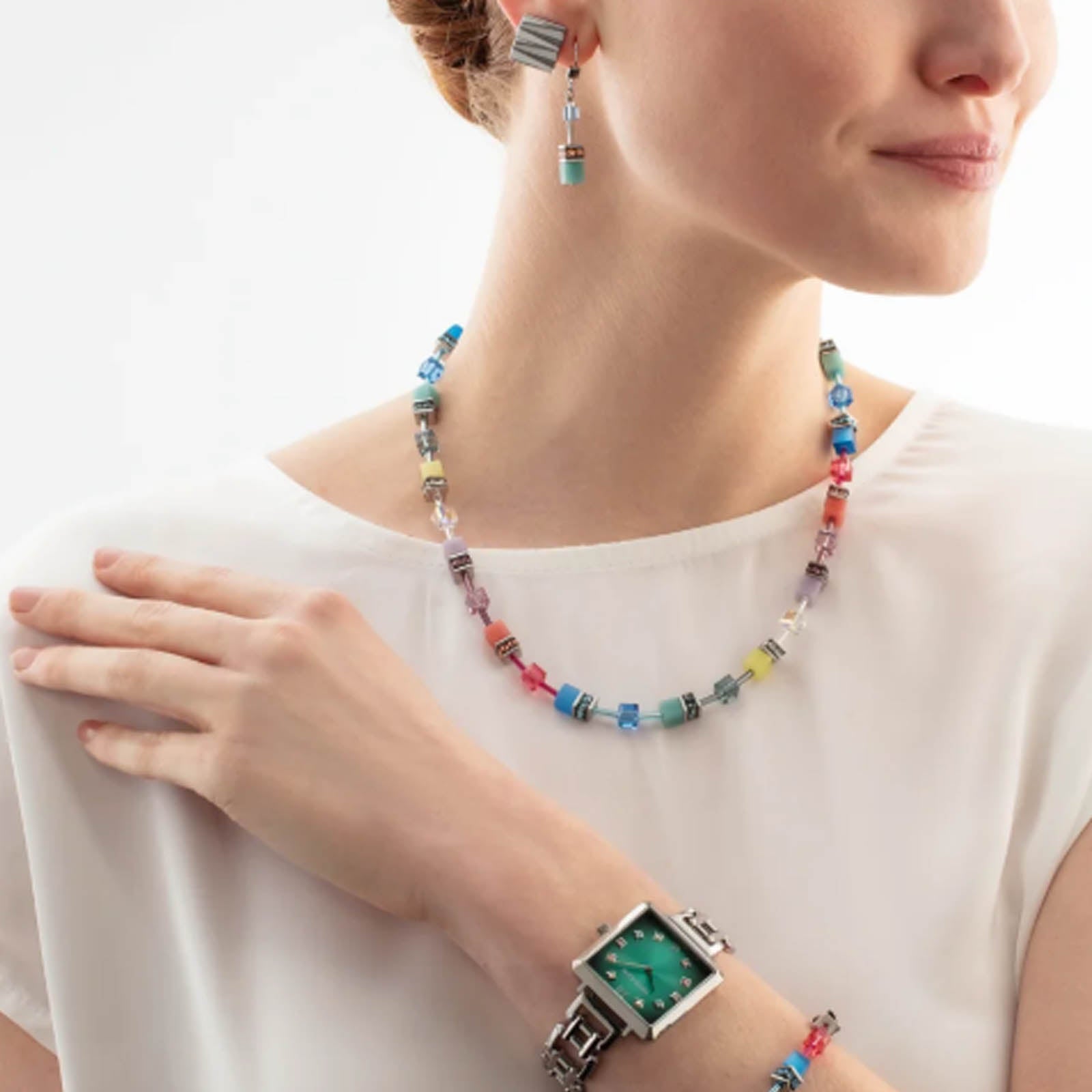 Coeur De Lion GeoCUBE Iconic earrings Magic silver 2838/20-1517. Vibrant colours, clear shapes - the GeoCUBE Iconic earrings Magic silver play with multicolour nuances and shiny stainless steel in silver. The iconic GeoCUBE elements catch the light and create a fresh, dynamic look that adds that certain something to any outfit. Stainless steel with a sterling silver rhodium plated leverback fitting. Length: 4 cm