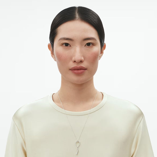 Organic and fluid, the Mercy collection from Jacqueline Rabun wraps softly around the body, serving as an emotional reminder to always stay compassionate towards others. The fluid form of this sleek silver pendant embodies Jacqueline Rabun’s poetic approach to jewellery design. Its smooth curves represent the flow of time and all the unexpected twists that define the human experience. It’s a strikingly sculptural piece that is gracefully suspended from a delicate silver chain, adding a touch of refined elegance to any ensemble. Product details Item number: 20001830 Materials: Sterling Silver Measurements: H: 42 mm / 1.65 inches. W: 15 mm / 0.59 inches. L: 600 mm / 23.62 inches. Launch year: 2025
