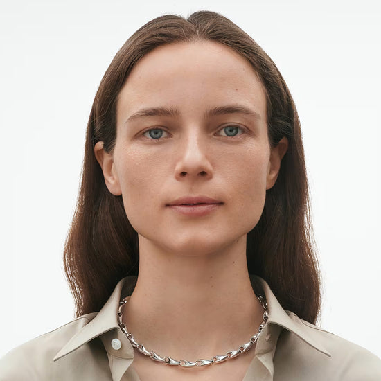 A collection of versatile chains that adds edge to any ensemble. Designed by Jacqueline Rabun for Georg Jensen, each piece acts as an extension of your unique personality. A fresh take on the traditional chain, this sterling silver necklace is formed by a series of organic-shaped links that interlock to create this stunning design. Wear it as a single chain or layered with other designs. Product details Item number: 20001178 Materials: Sterling Silver Measurements: W: 7 mm / 0.28 inches. Circumference: M: 460 mm / 18.11 inches Design year: 2022