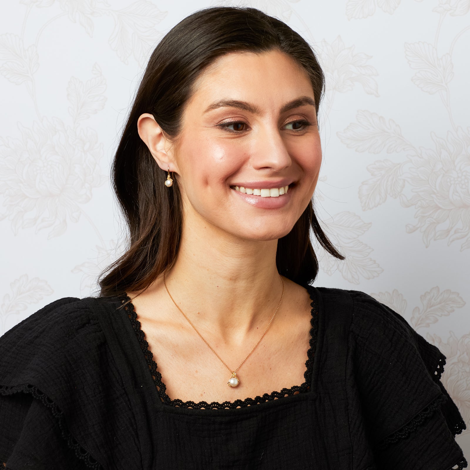 Inspired by the graceful curves and vintage charm of the Laura Ashley Ickleford Tulips print, these elegant earrings capture the quiet beauty of nature in bloom. Crafted in recycled sterling silver with a warm yellow gold plating, each earring features a lustrous freshwater pearl nestled among delicate golden blossoms, evoking the gentle stillness of a sunlit meadow. Feminine and timeless, they offer a touch of countryside romance to any look. Dimensions (WxHxD): 9 x 21.5 x 6mm