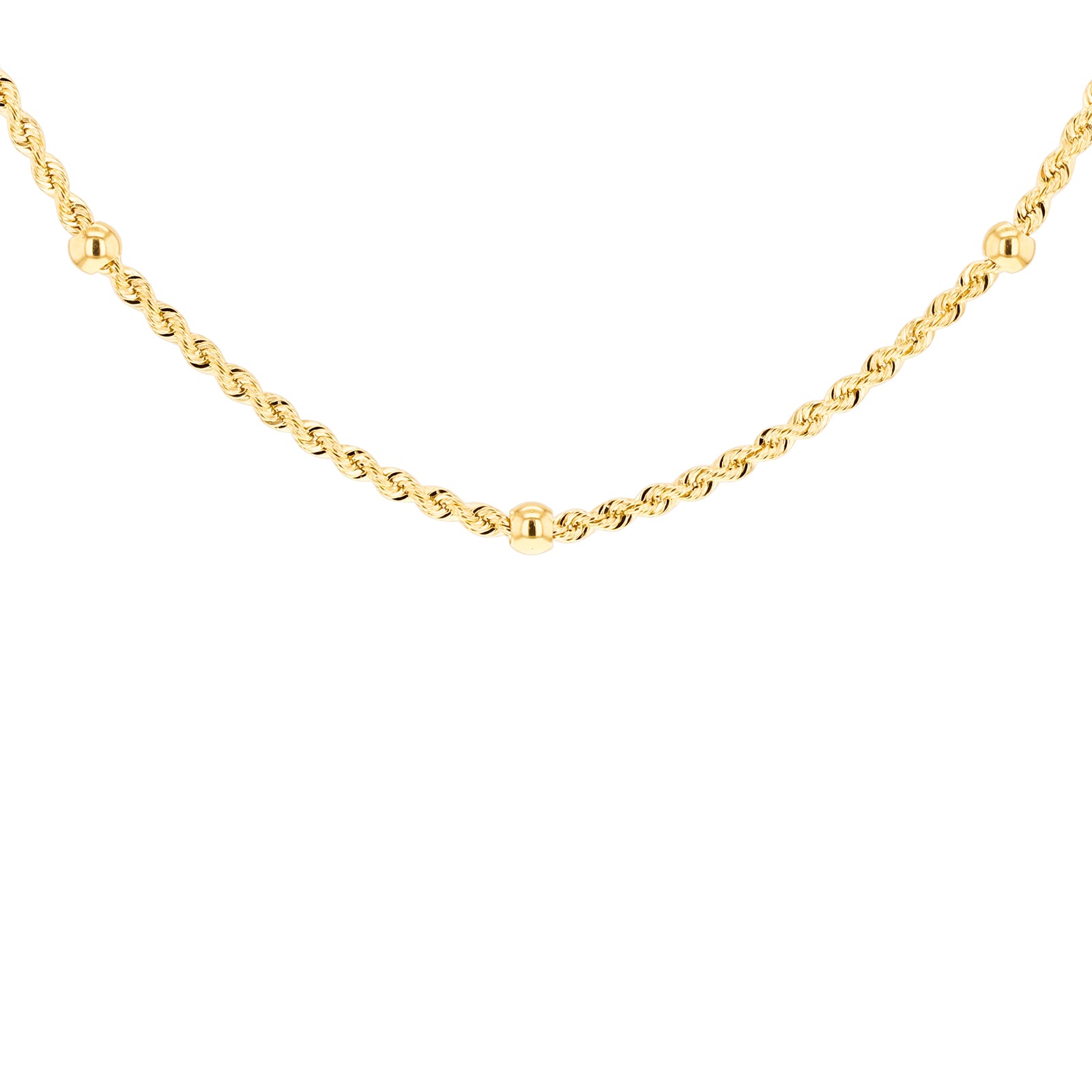 9ct yellow gold rope chain with ball stations 18in long. Width: 3.5mm. Bolt ring clasp.