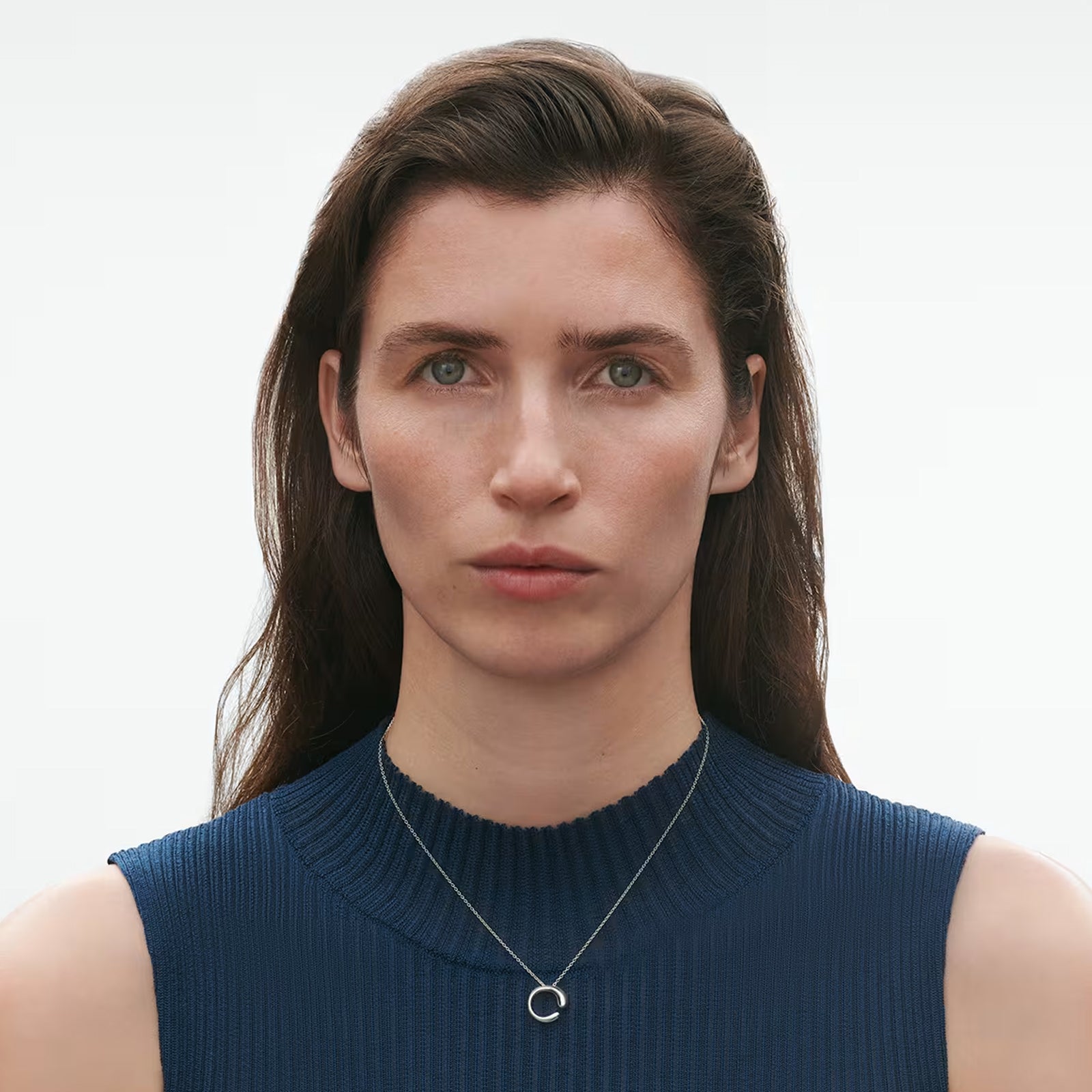 A light and stylish pendant that will add a contemporary and cool element to your appearance. The soft curves of the Mercy pendant symbolise the flow of time – and how the twists and turns in life come to define us. The gap in the middle acts an emotional reminder to take stock of life every now and then. The Mercy collection is designed by long-time Georg Jensen-collaborator Jacqueline Rabun. The American designer is famous for her sculptural and emotionally charged jewellery pieces, and this range of rings, bangles and pendants follows the tradition with elegance. The Mercy pendant is the perfect everyday accessory – and thanks to its light expression it is ideal when it comes to layering pendants or necklaces. The Mercy pendant is made from sterling silver – and the length of the chain can be easily adjusted by using the loops. The Mercy pendant is available in 3 different sizes: small, medium and large. Product details Item number: 10015155 Materials: Sterling Silver Measurements: W: 4 mm / 0.16 inches. Ø: 15 mm / 0.59 inches. 45 CM 1.1 MM ANCHOR CHAIN The length of the chain can be adjusted by using the loops Design year: 2019 Launch year: 2019