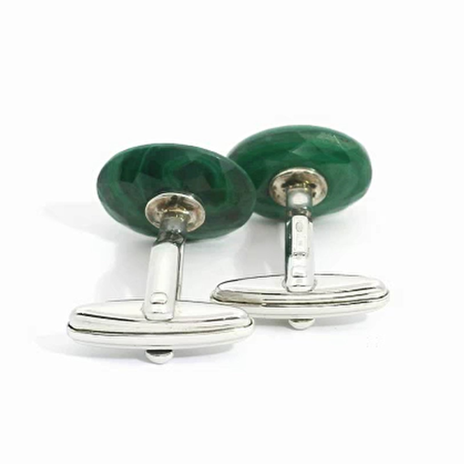 Silver Oval Malachite & Emerald Swivel Cufflinks