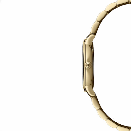 Featuring a stainless steel yellow gold PVD plated 29 mm diameter round case, a delicate white mother-of-pearl dial adorned with 11 0.03-carat diamond hour markers, and a date window at 3 o’clock. This classic gold ladies’ toccata proves beauty is not always fleeting. Refined design and timeless materials: toccata will impress women on whom time holds no dominion. This elegant and timeless collection celebrates the artistic and musical spirit behind the Brand’s DNA. Following in the footsteps of the great composers, toccata promotes RAYMOND WEIL’s Swiss horology while respecting the tradition and heritage handed down from generation to generation within the family company. Technical datas Collection: toccata Size: ladies Shape: round Movement: quartz Movement Caliber Height: 2.5 mm Case Material: stainless steel with yellow gold PVD plating Case size: 29 mm Case Thickness: 6.79 mm Case Back: snapped Water Resistance: 50 m, 165 ft, 5atm Crystal: sapphire Dial: white mother-of-pearl, set with diamonds Crown: with RW logo Clasp: stainless steel folding clasp with double push-security system Bracelet stainless steel with yellow gold PVD plating