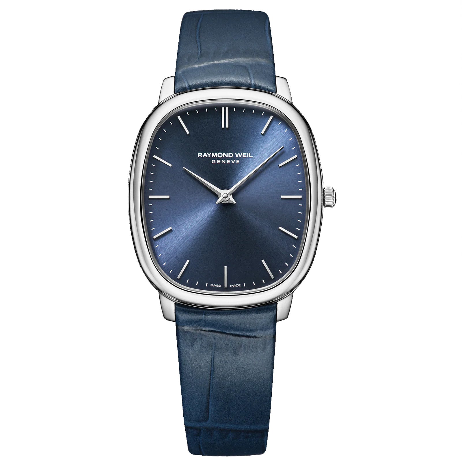 Bridging past and present, the toccata heritage timepieces embody nearly five decades of RAYMOND WEIL’s expertise in watchmaking. The graceful oval case, crafted in polished stainless steel, houses a quartz movement. A testament to the Maison’s dedication to Swiss accuracy and enduring reliability. The sun rayed blue dial captures light with subtle sophistication. Applied indexes and dauphine hands achieve perfect visual balance, reflecting the harmony between technical precision and aesthetic grace. Fitted with a blue genuine calf leather strap and a newly designed tongue buckle echoing the case’s shape, the toccata heritage offers both comfort and timeless character. With its slim profile and refined oval form, this creation celebrates the enduring dialogue between music and time that defines the Maison. A vibrant tribute to timeless elegance, where history is reinvented to engage in a dialogue with the now. This new interpretation blends timeless elegance with modernity, staying true to the visionary spirit of its founder, Mr. Raymond Weil: an elegant Swiss watchmaking, crafted with meticulous attention to detail. Technical datas Collection: toccata Shape: Oval Movement: Quartz Case Material: Stainless steel Case size: 31 mm x 36 mm Case Thickness: 5.1 mm Case Back: Screwed Water Resistance: 30 m, 98 ft, 3atm Dial: Sun rayed blue with applied indexes Crown: Fluted with RW monogram Clasp: Stainless steel traditional buckle Bracelet Blue genuine calf leather